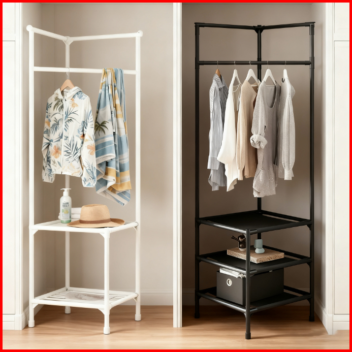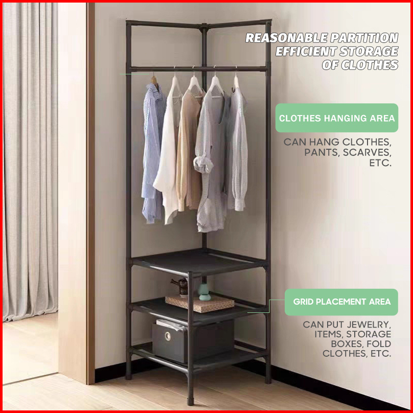 Rak Hanger Sudut Serbaguna Simpan Pakaian Rak Gantung Pakaian Minimalis Rak Mantel Sudut Kokoh Rak Berdiri Di Lantai Kes