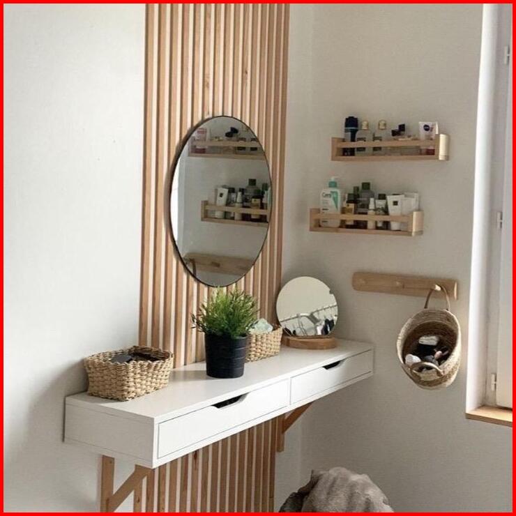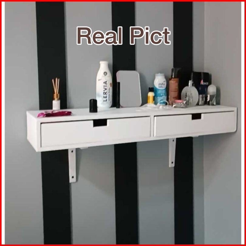 Rak Kosmetik Tempel Dinding 80x20cm Dengan 2 Laci Penyimpanan Ambalan Gantung Dekorasi Kamar Minimalis