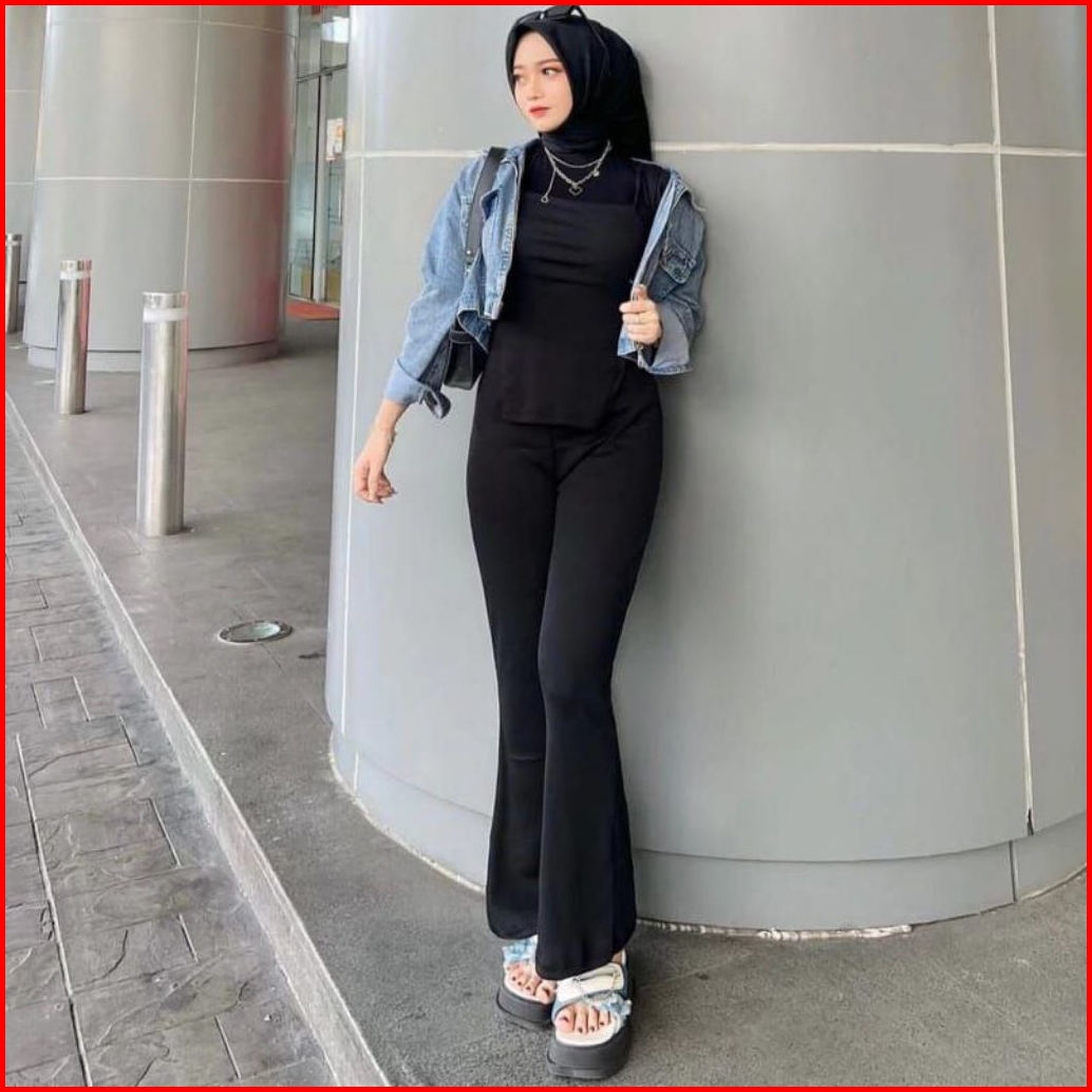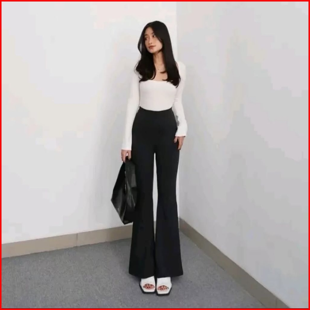 Flare Pants Highwaist - Celana Kulot Cutbray Bahan Scuba Premium - Celana Fit Flare Cutbray Pinggang Highwaist