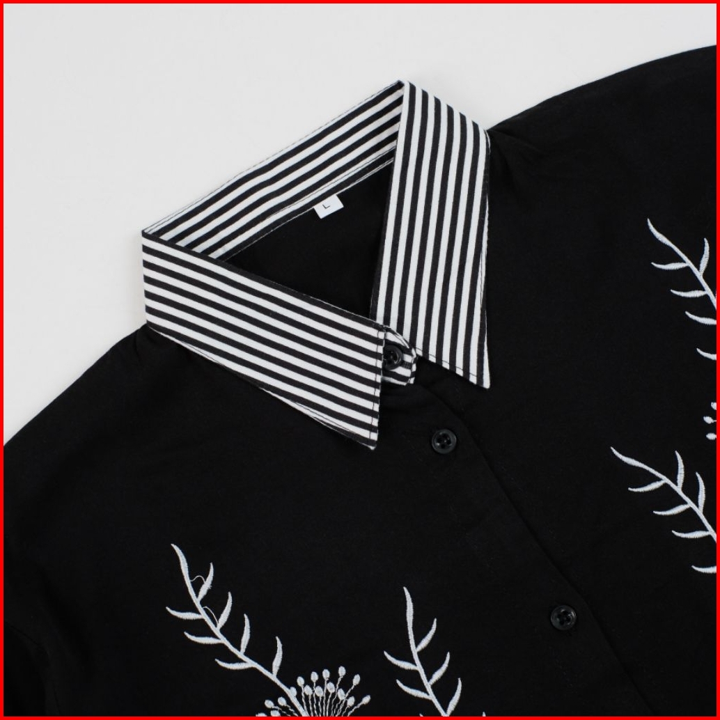 Azkia Top Kemeja Bordir Bunga Elegan - Atasan Wanita Lengan Panjang Premium - Kemeja Oversize Cewek Rayon Basic