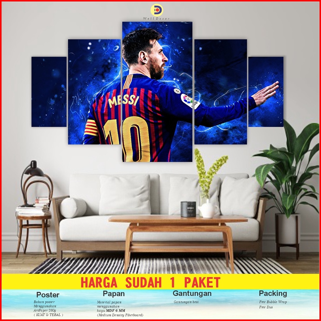 Cimon 1set Poster Kayu Lionel Messi Pajangan Hiasan Dinding Messi Poster Bola 5pcs