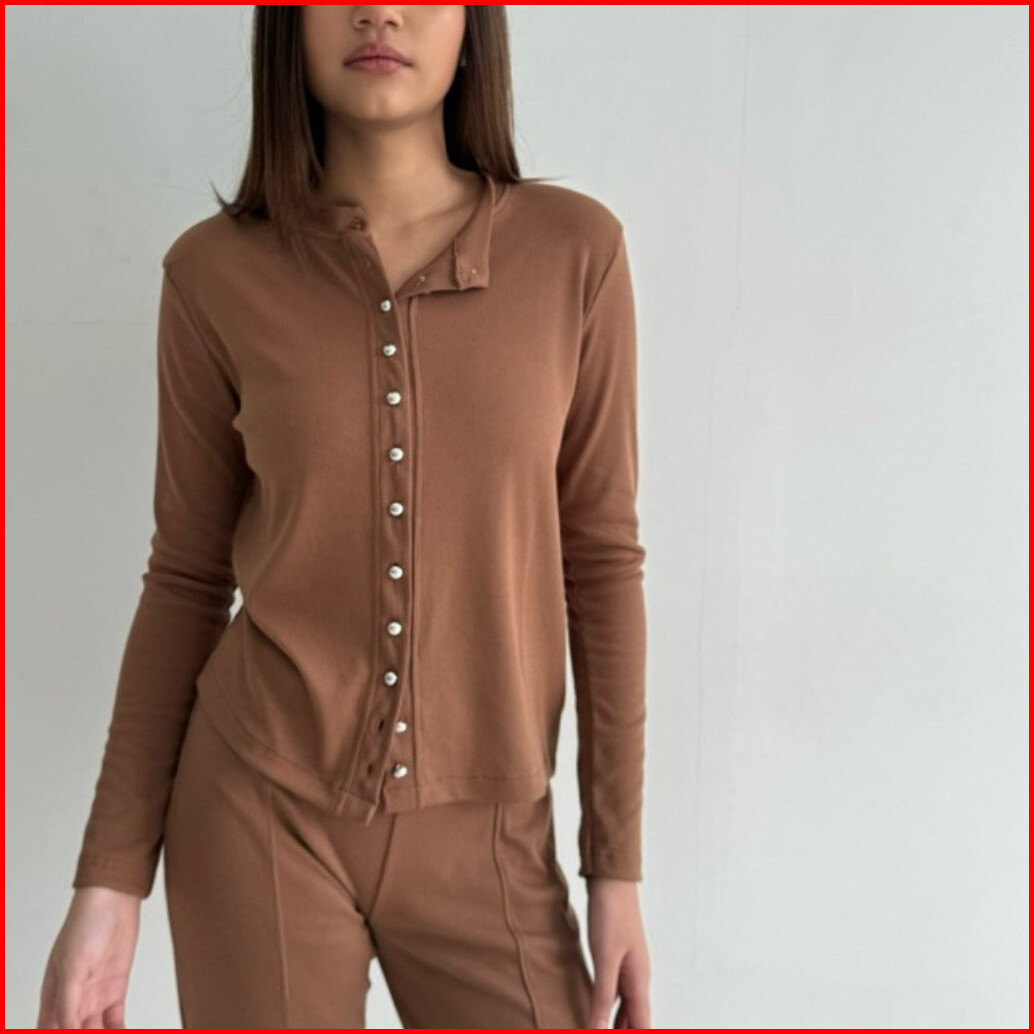 Basic Knit Long Sleeve Atasan Wanita Korean Top Summer Baju Knit Wanita Lengan Panjang Kaia - Ann