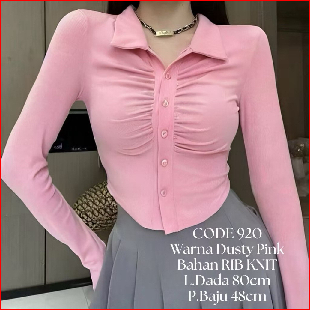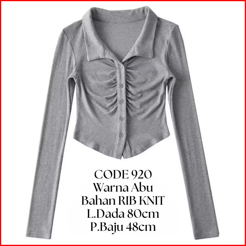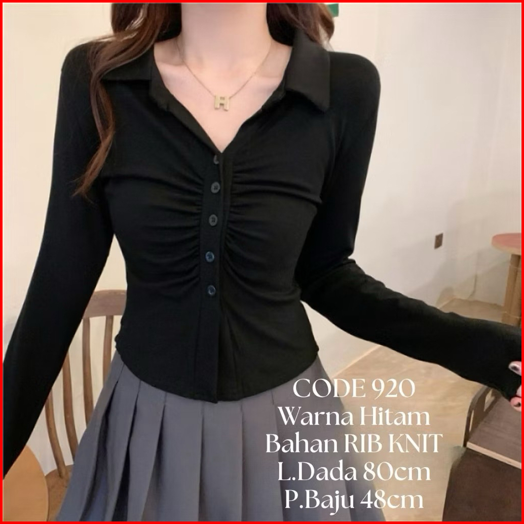 Hoki Clothing - Basic Button Crop Top Long Sleeve Baju Wanita Lengan Panjang Korean Fashion Atasan Wanita Rib Knit Kerah