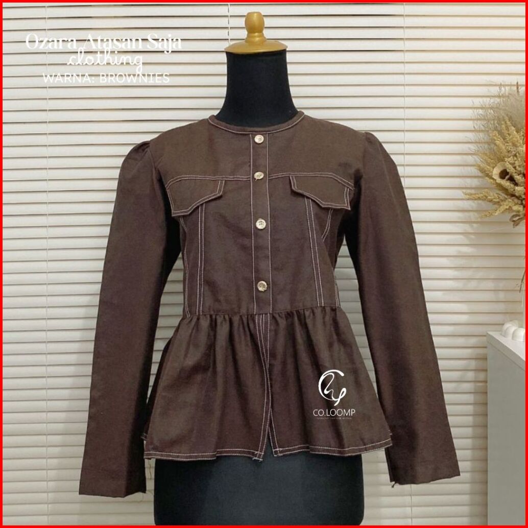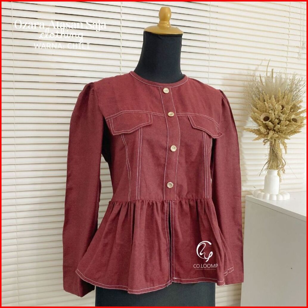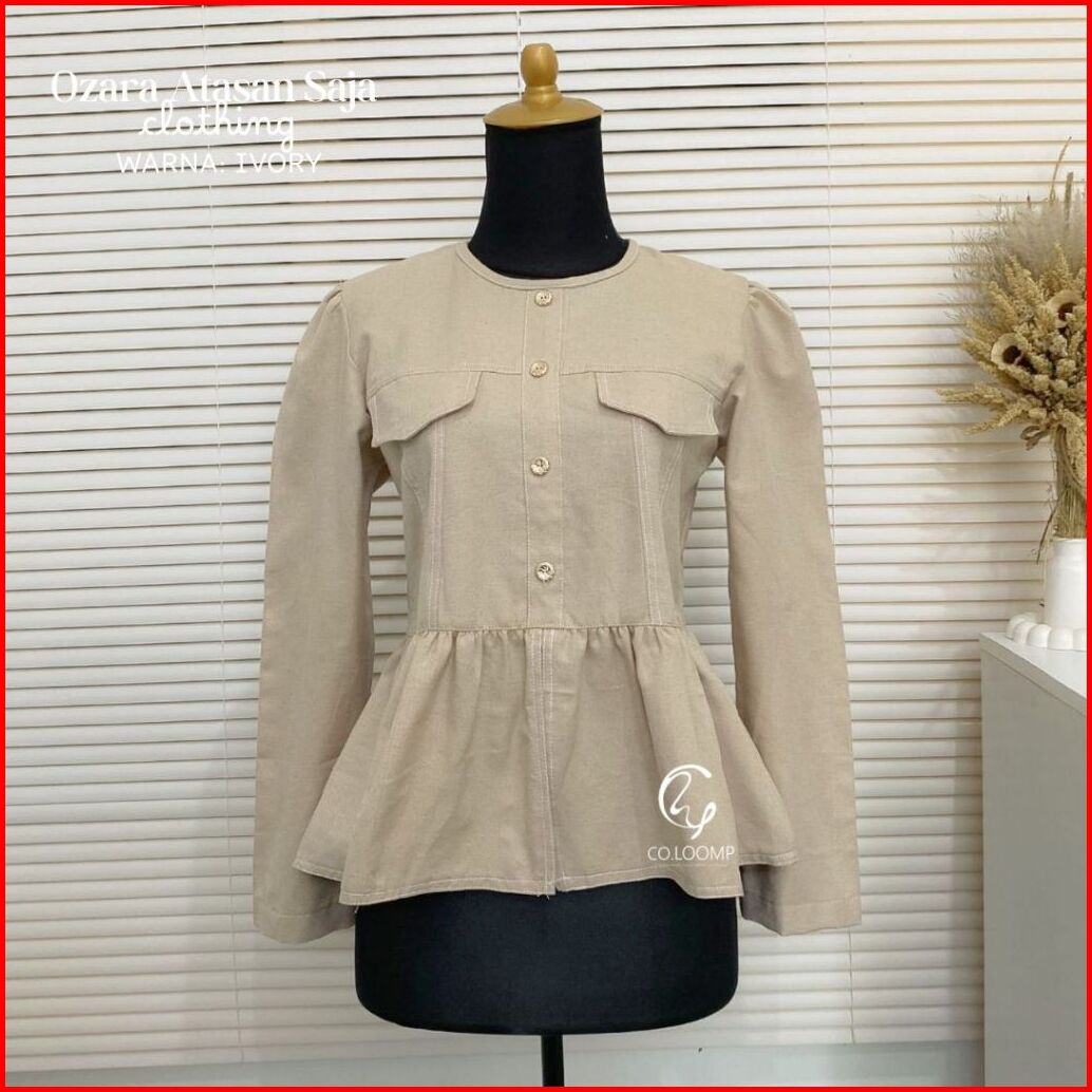 Coloomp Ozara Top Wanita Peplum Saku Elegant Pakaian Wanita Korean Style