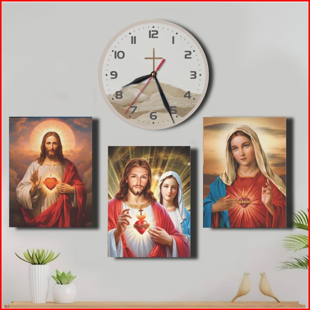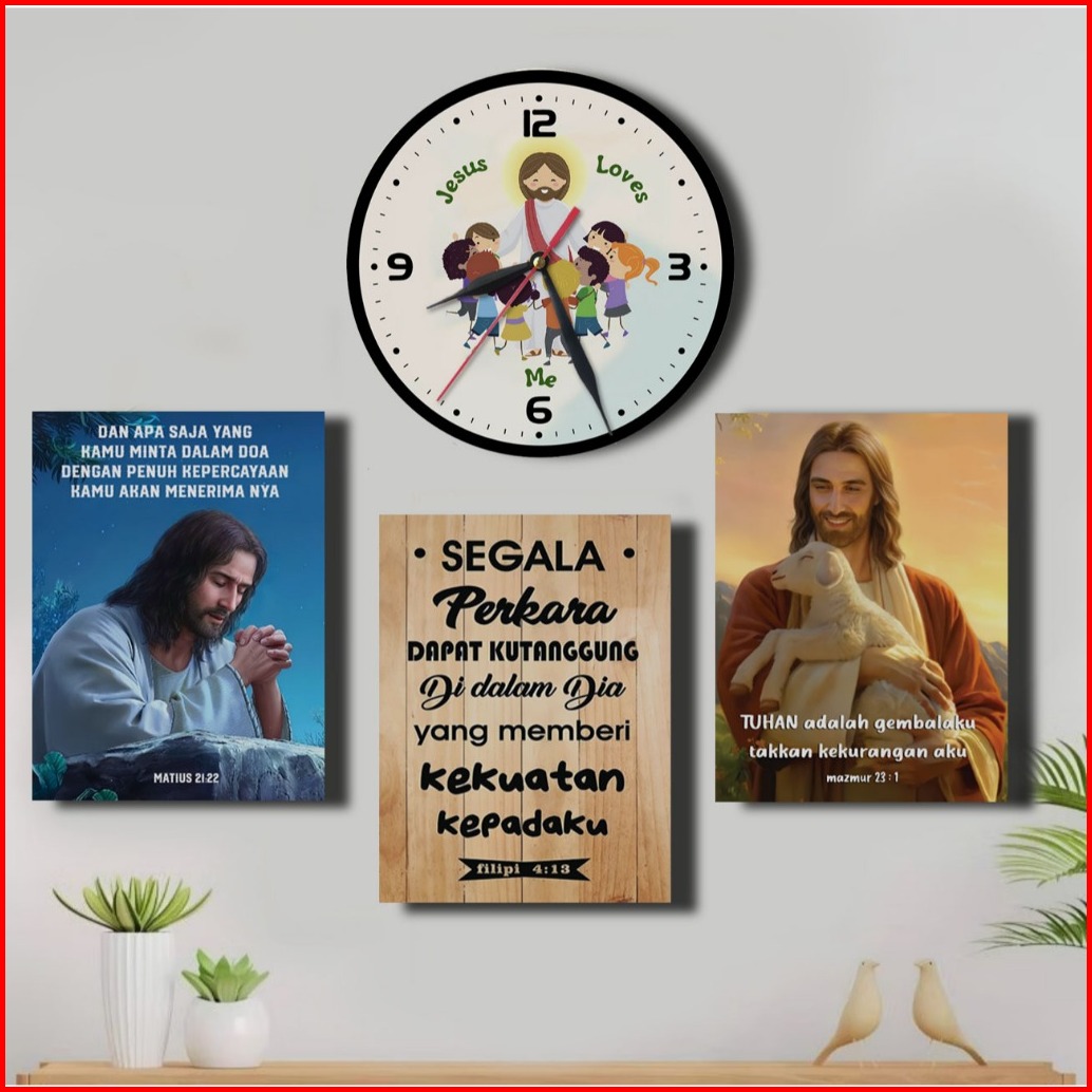 Set Jam Dan Hiasan Dinding Moderen Kayu Salib Yesus Kristen Dekorasi Ruang Tamu