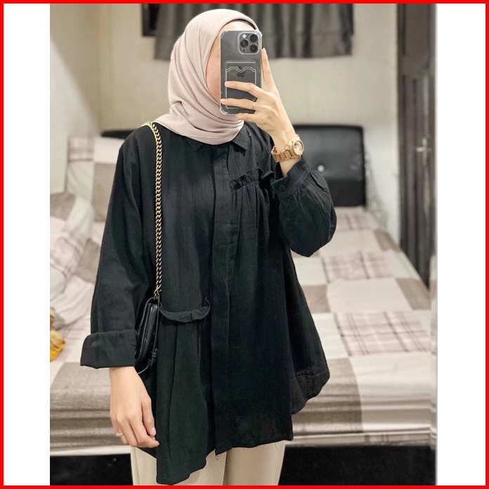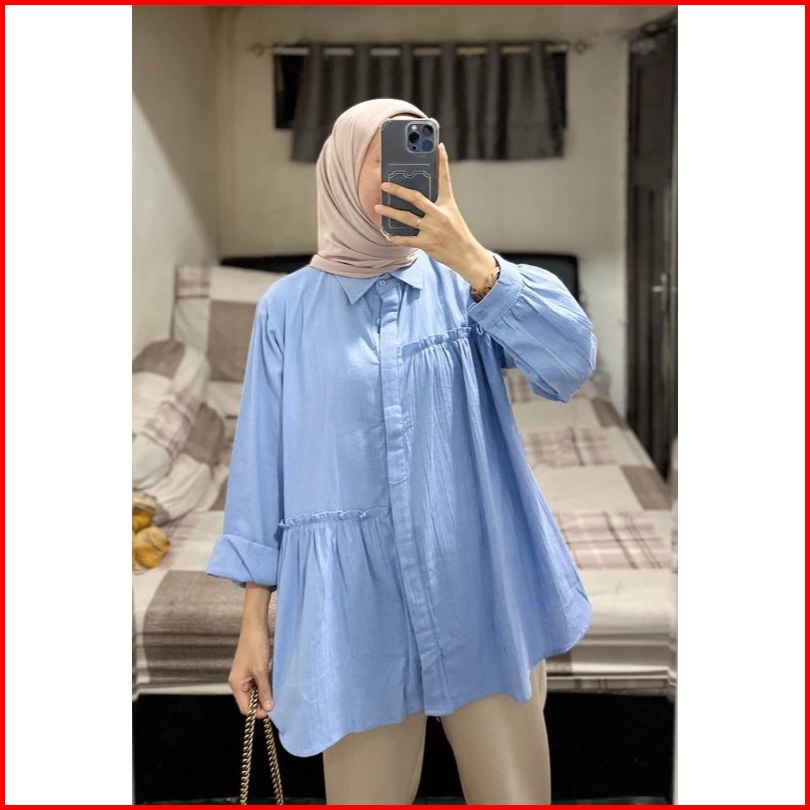 Carren Top Linen Shirt - Atasan Wanita Oversize - Blouse Kemeja Wanita