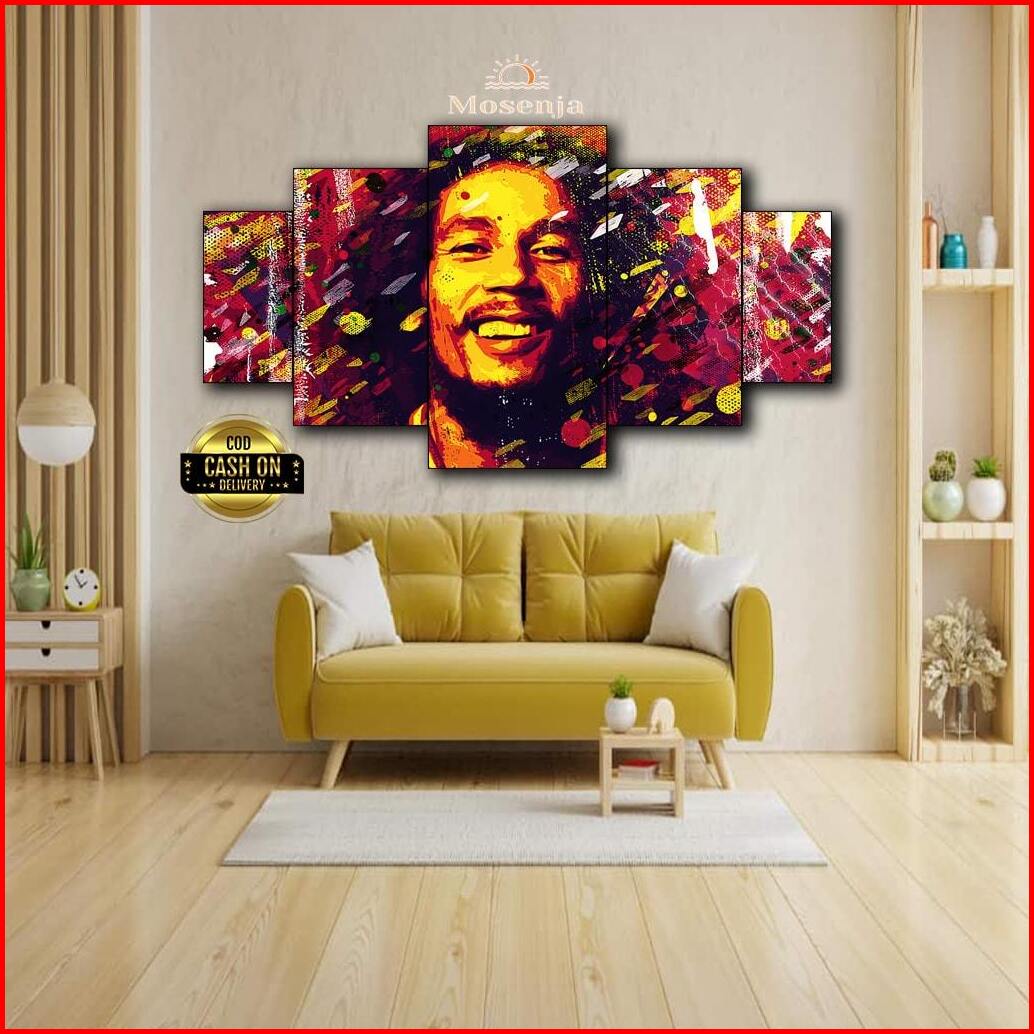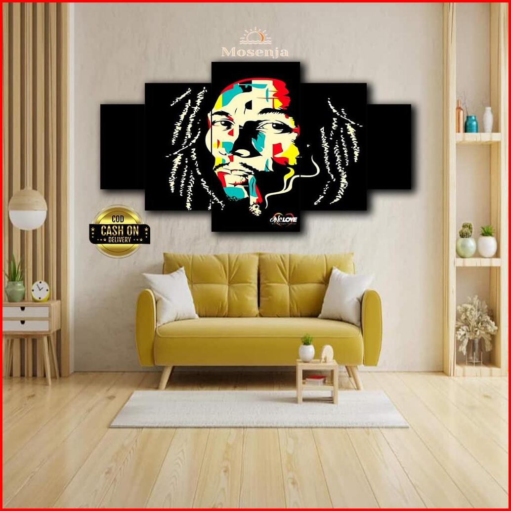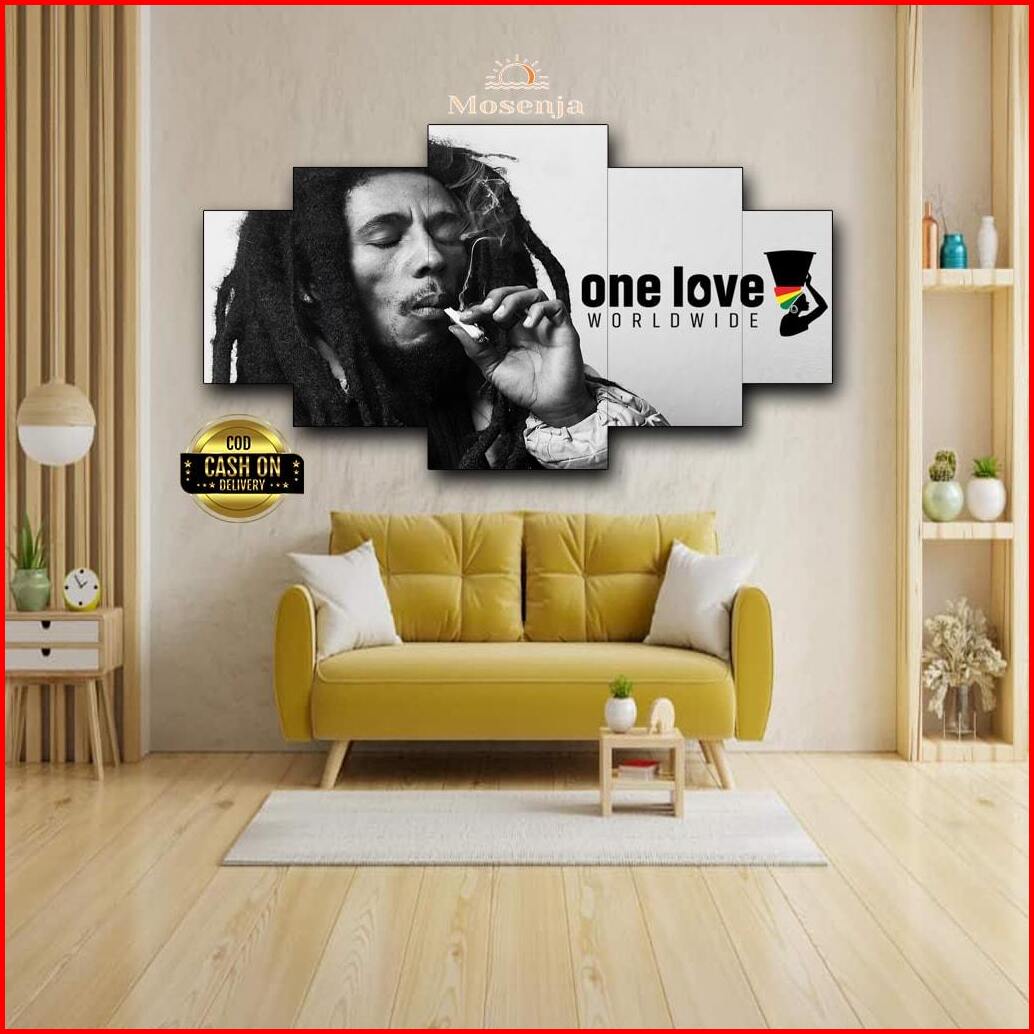 Hiasan Dinding Kayu Bob Marley 5 Panel - Poster Wall Art Vintage Dekorasi Ruang Tamu Keren