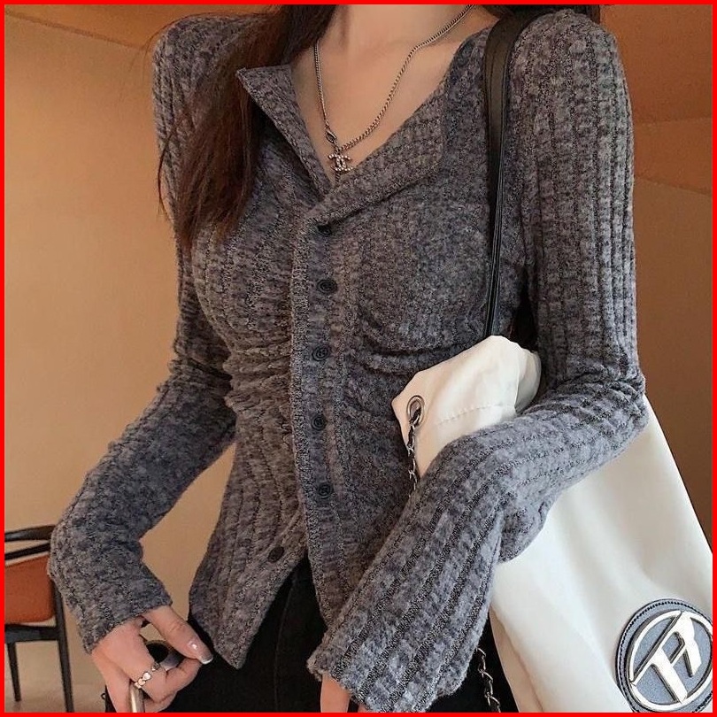 Atasan Serut Wanita Stretch Long Sleeve Gadis Atasan Seksi Korea Style M662