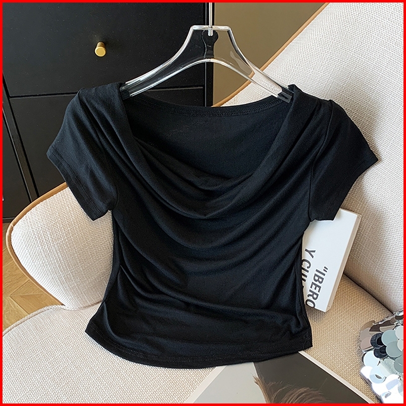 Kaos Lengan Pendek Satu Bahu Modis Dan Seksi Atasan Ketat Wanita Gaya Korea