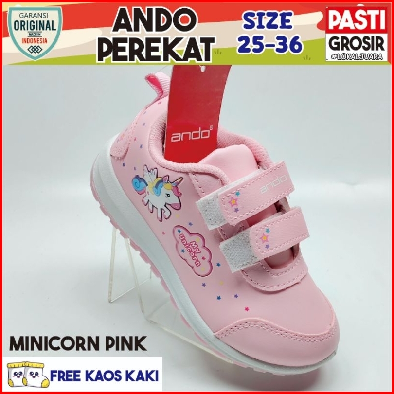 Ando Perekat Cewek Warna Ukuran 25-32 Pink Hitam Putih Ando Minicorn Pink Sepatu Ando Sepatu Anak Warna Sepatu Anak Cewe