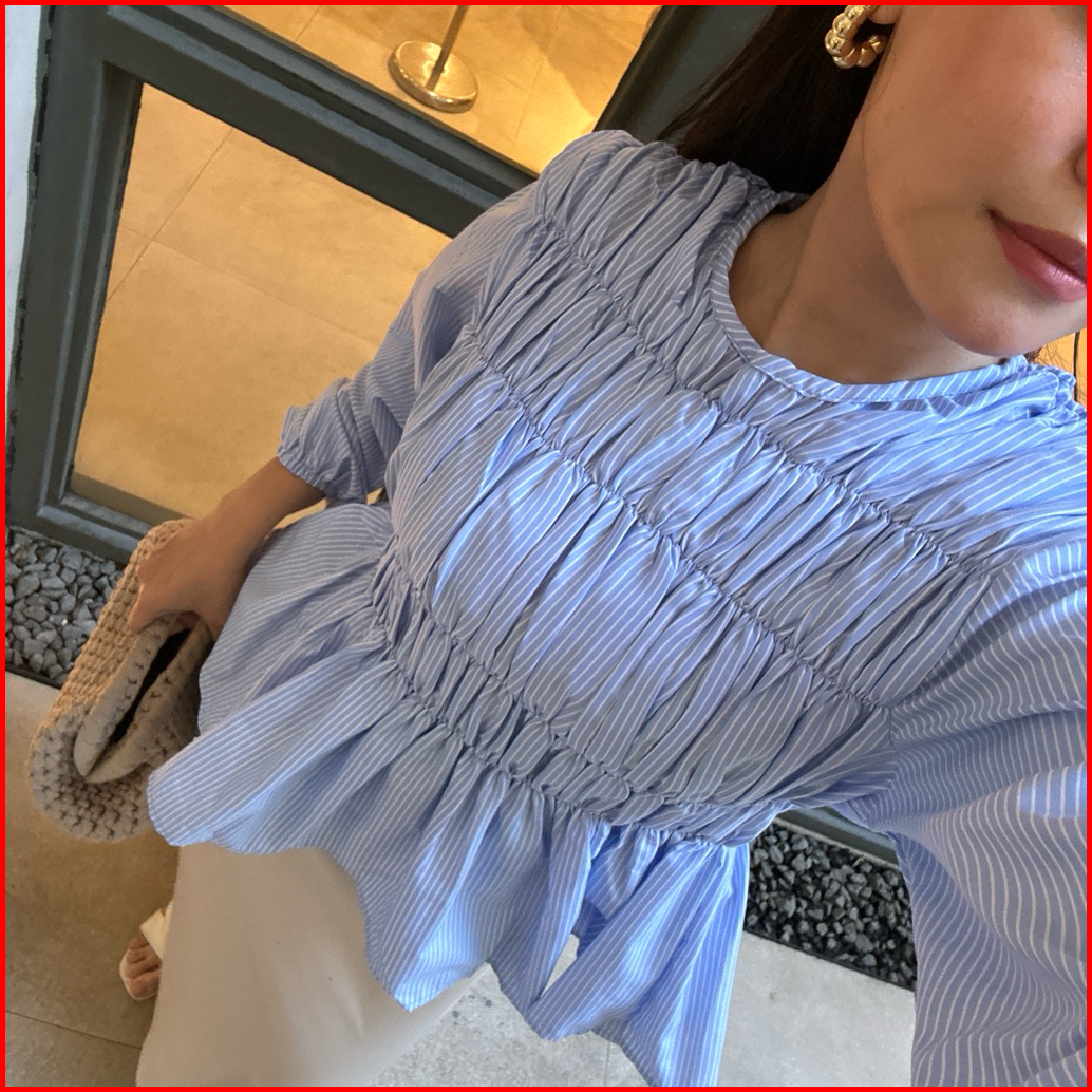 Jiso Blouse Short Sleeves - Atasan Wanita Korean Style - Fitted Blouse