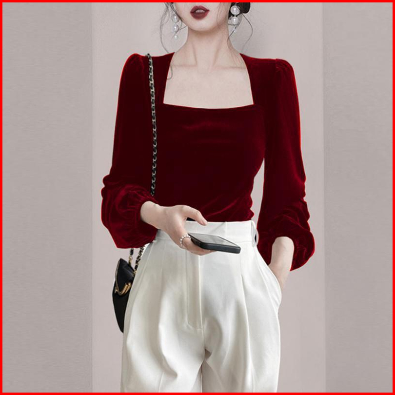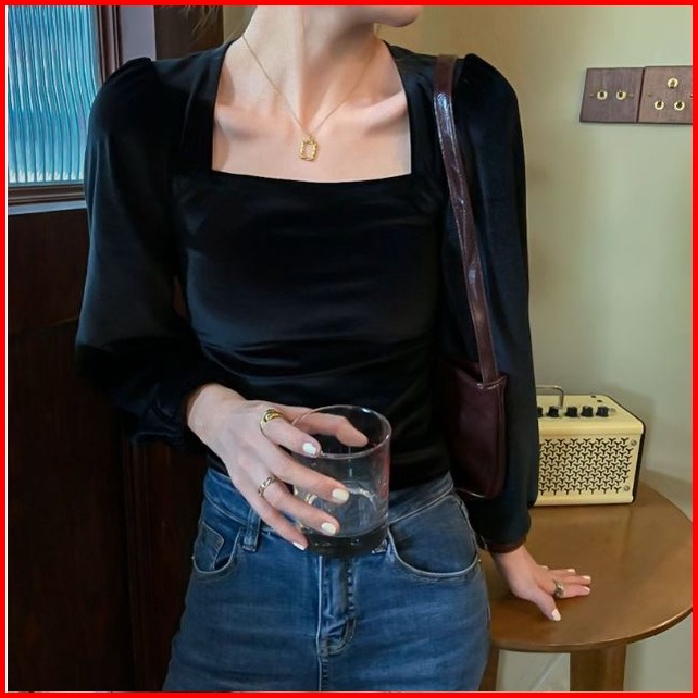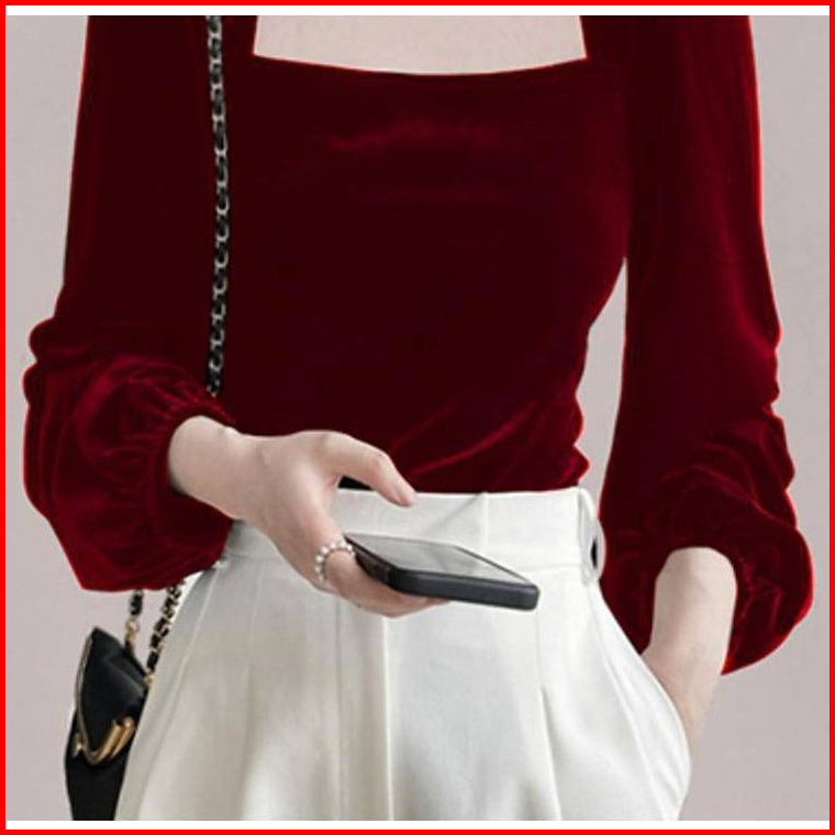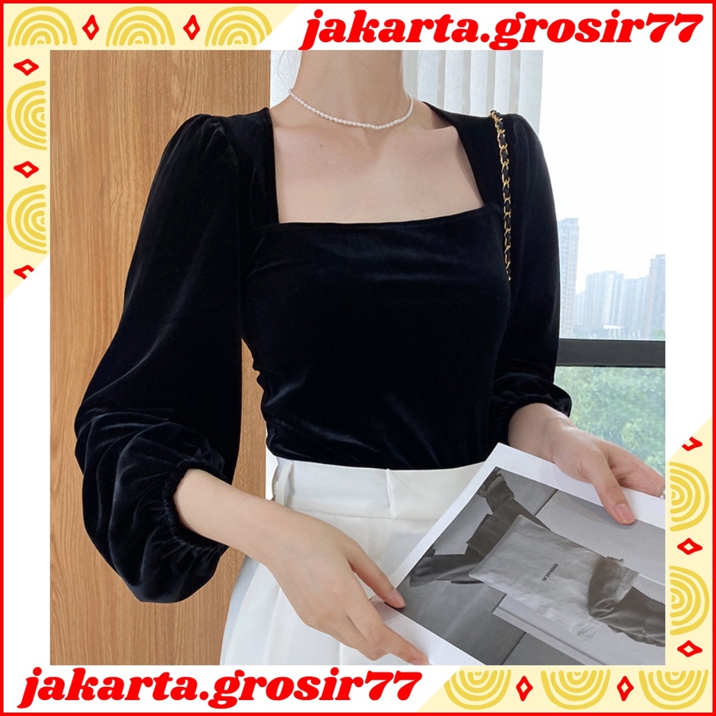 Jg Bj339 Baju Atasan Wanita Lengan Panjang Blouse Bluse Top Sabrina Crop Top Elegan Korean Fashion Natal Christmas