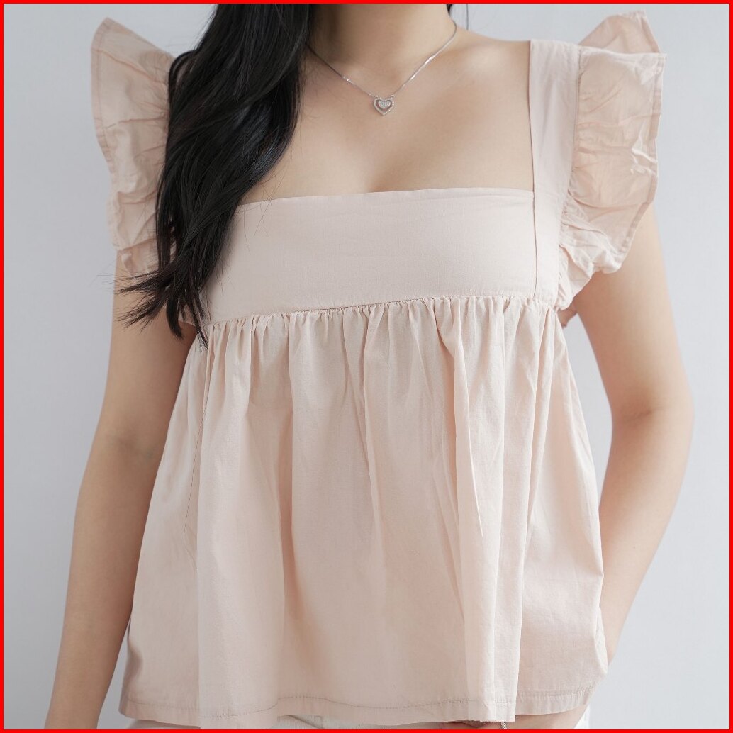 99koutlet Square Neck Ruffle Strap Back Bow Tie Tank Peplum Blouse 1749 S M L Xl