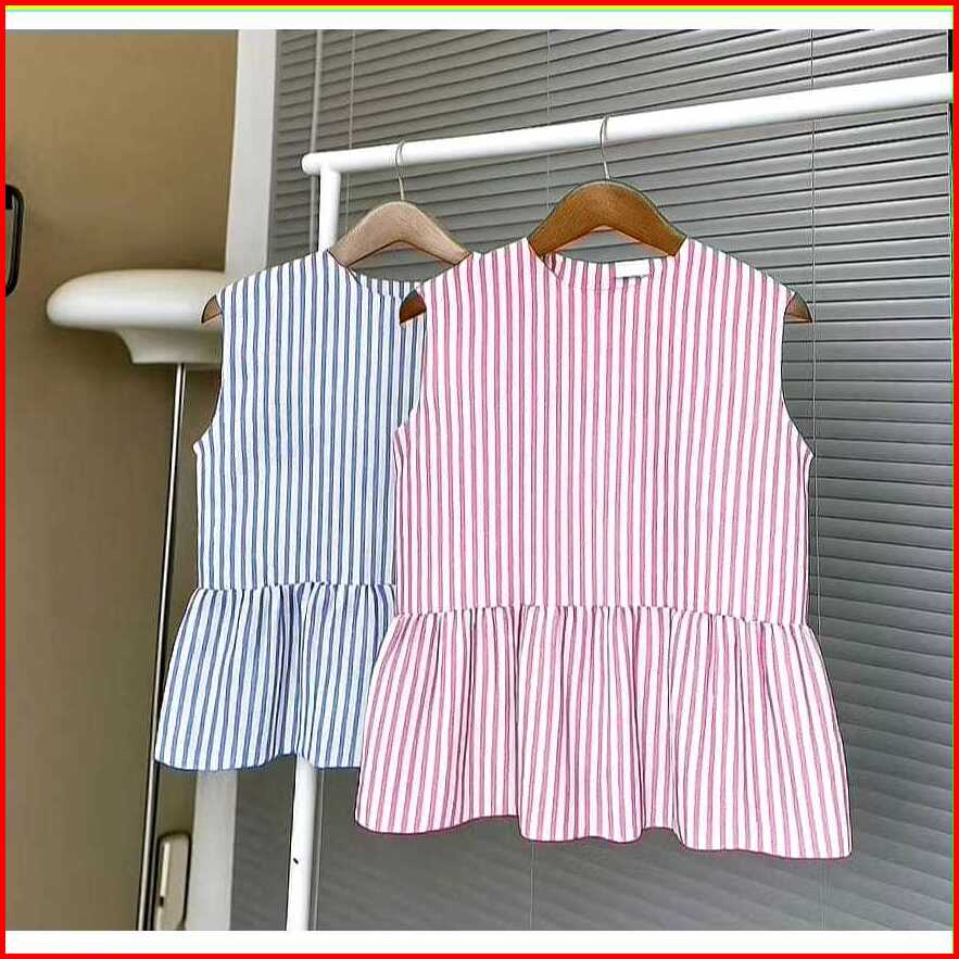 Amora Vest Peplum Top Korean Style Stripe Blouse Wanita Casual Tanpa Lengan