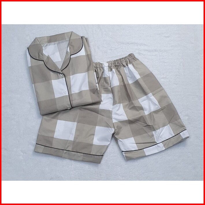 Baju Tidur Pendek Wanita Dewasa Kotak Emily Pajamas Kekinian