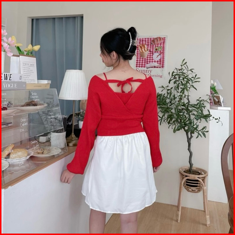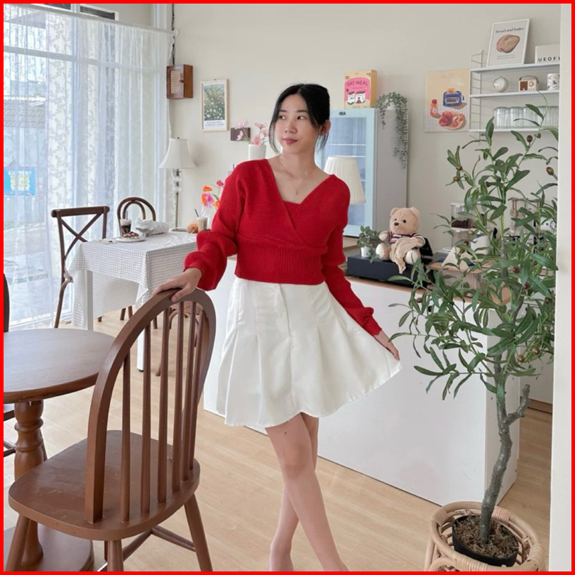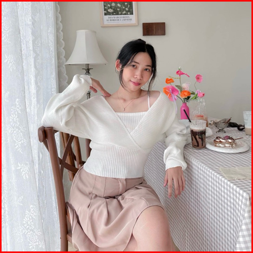 Luxoyez Bisa Hani Top - Korean Lengan Panjang V Neck Lengan Balon Batwing I068
