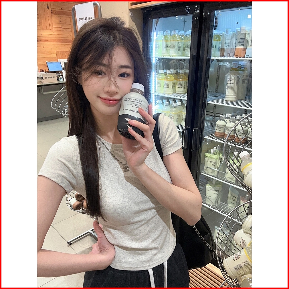 Kaus Lengan Pendek Kasual Multiwarna Baru Wanita Atasan Leher Bulat Ramping