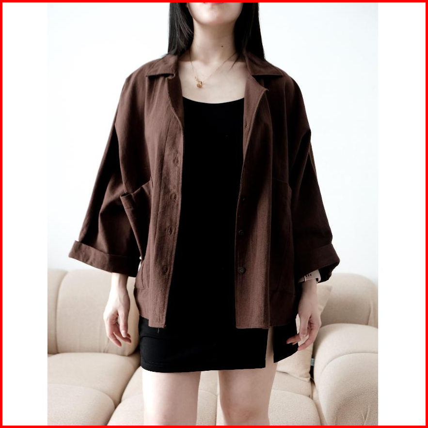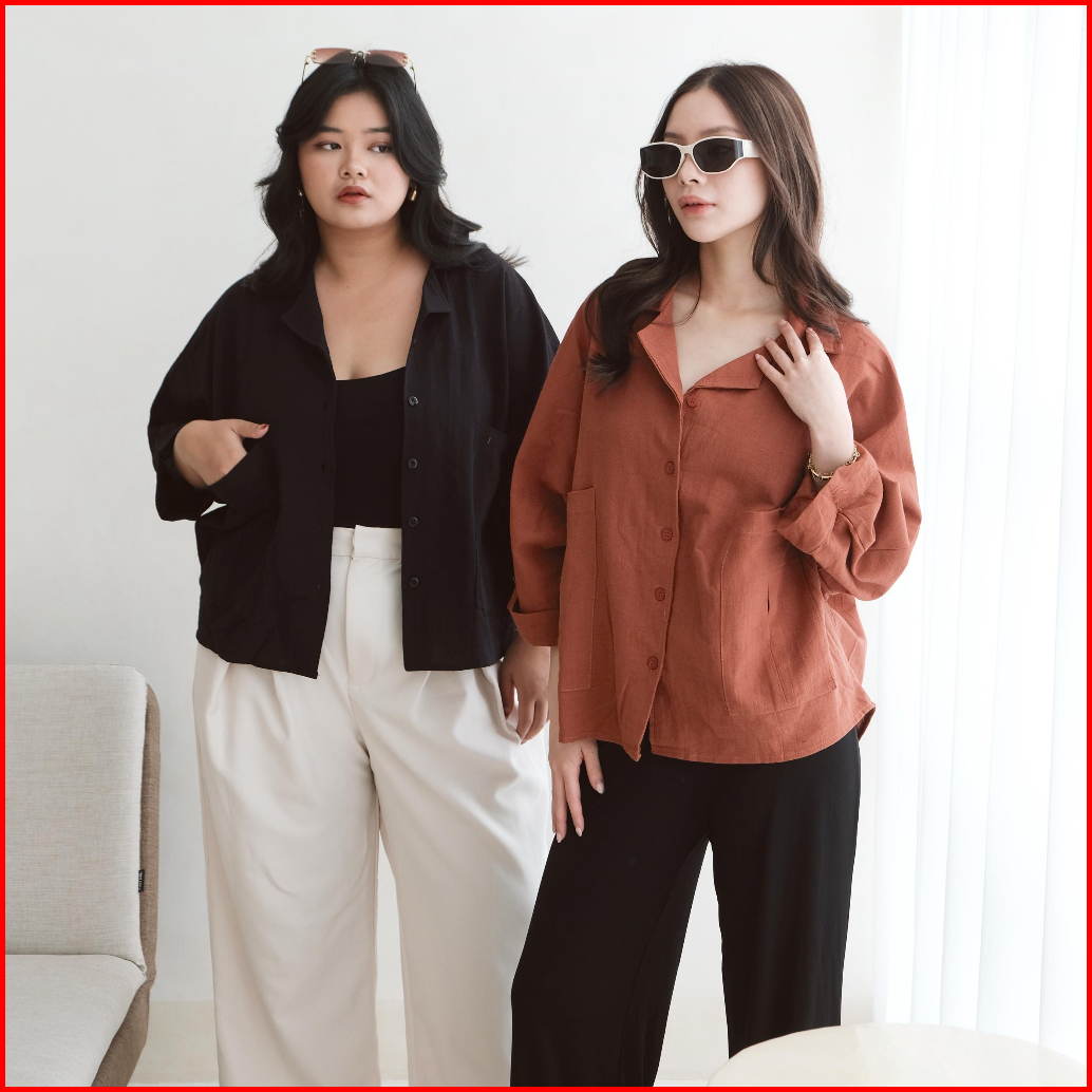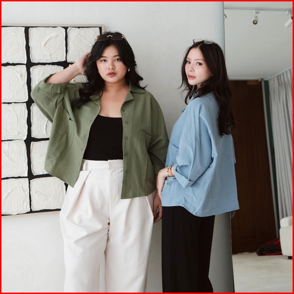 Pluffyschoice Eden Linen Batwing Short Sleeve Shirt Baju Atasan Wanita