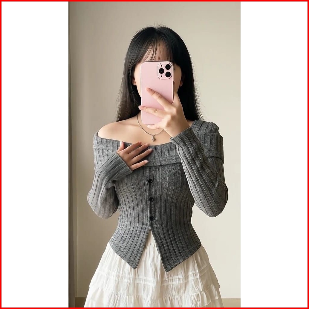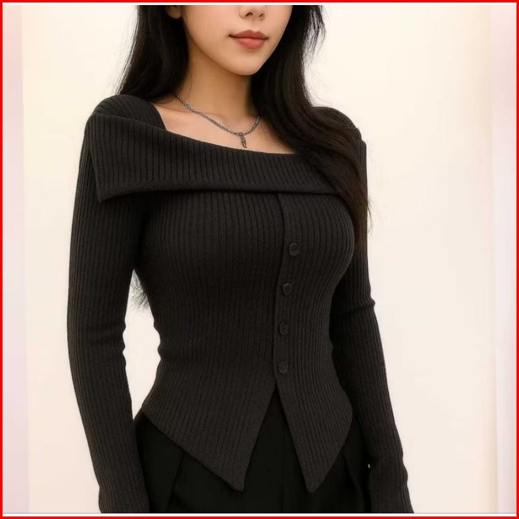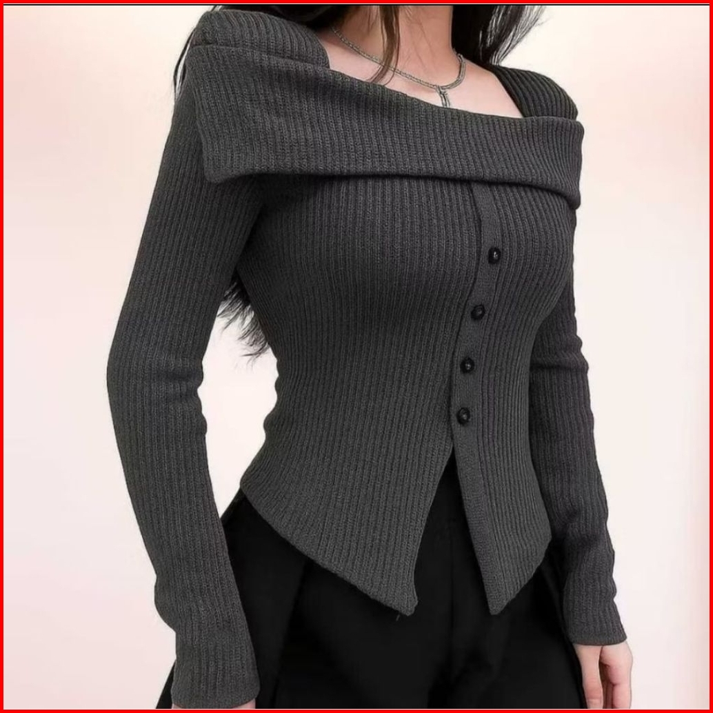 Sabrina Rib Knit Kancing Lengan Panjang - Atasan Wanita Stylish Basic Korea Modern Terbaru