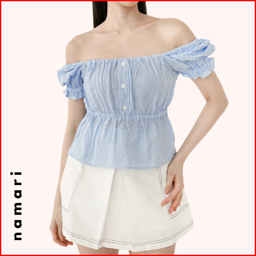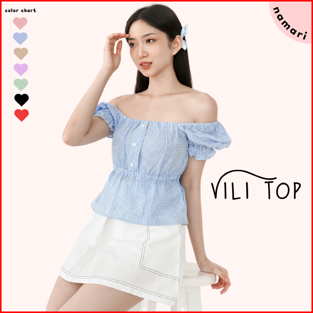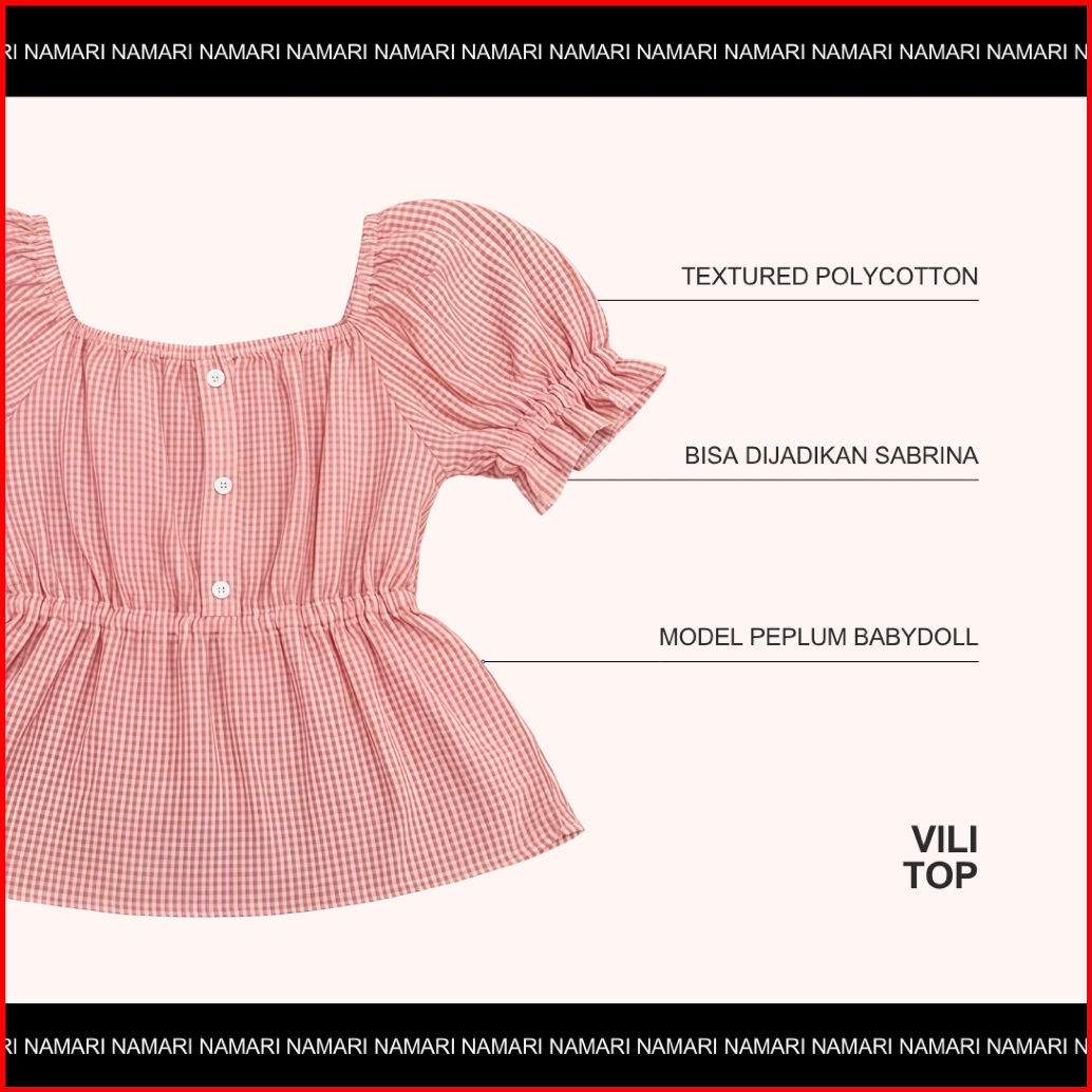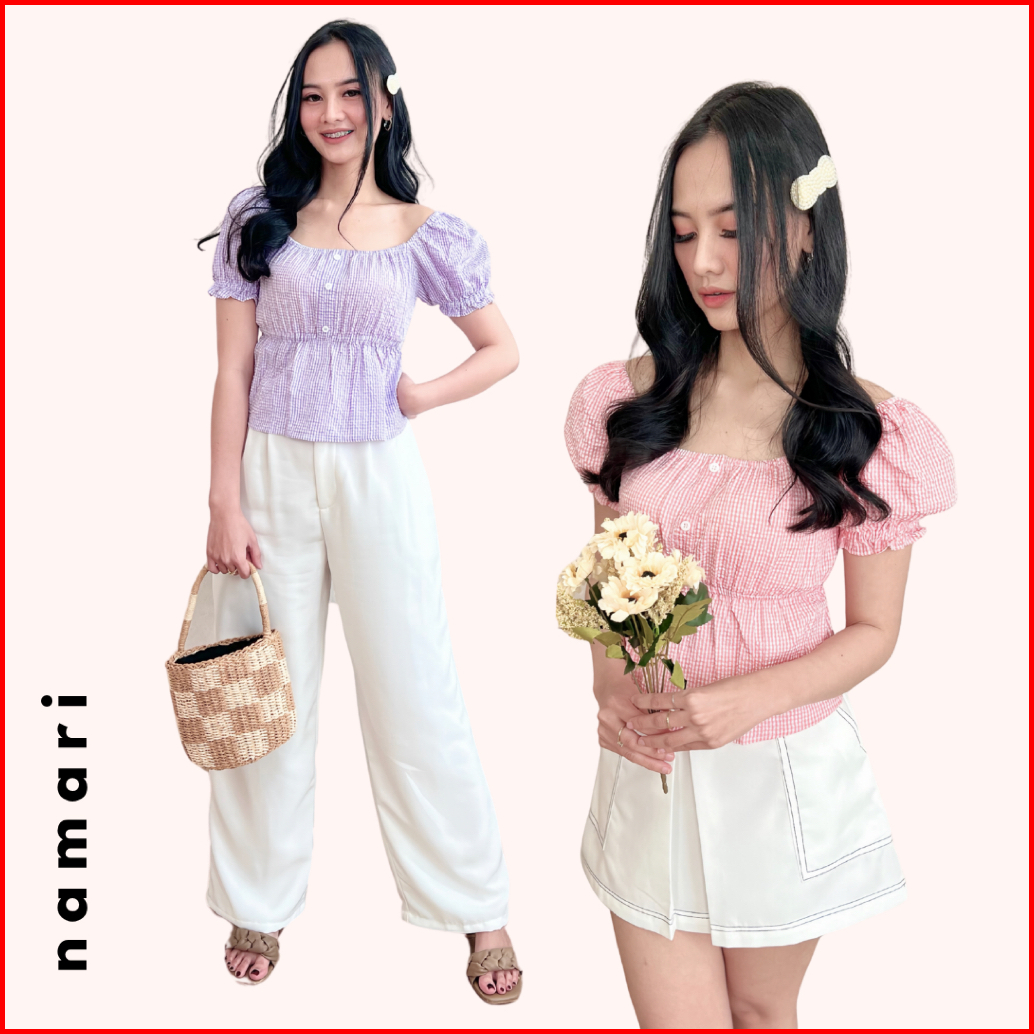 Namari - Vili Top - Baju Blouse Blus Sabrina Babydoll Croptop Lucu Cute Kotak Plaid Korean Wanita