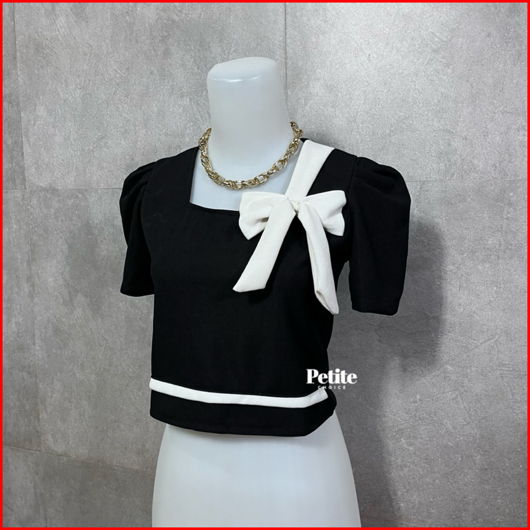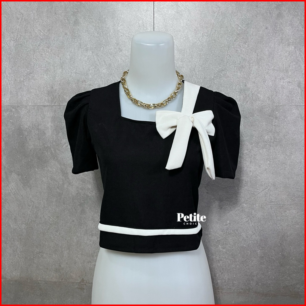 Petitechoice Lynelle Top Atasan Crop Wanita Knit Stretch Casual Slim Fitting Kancing Tali Korean Knitwear Panjang Basic