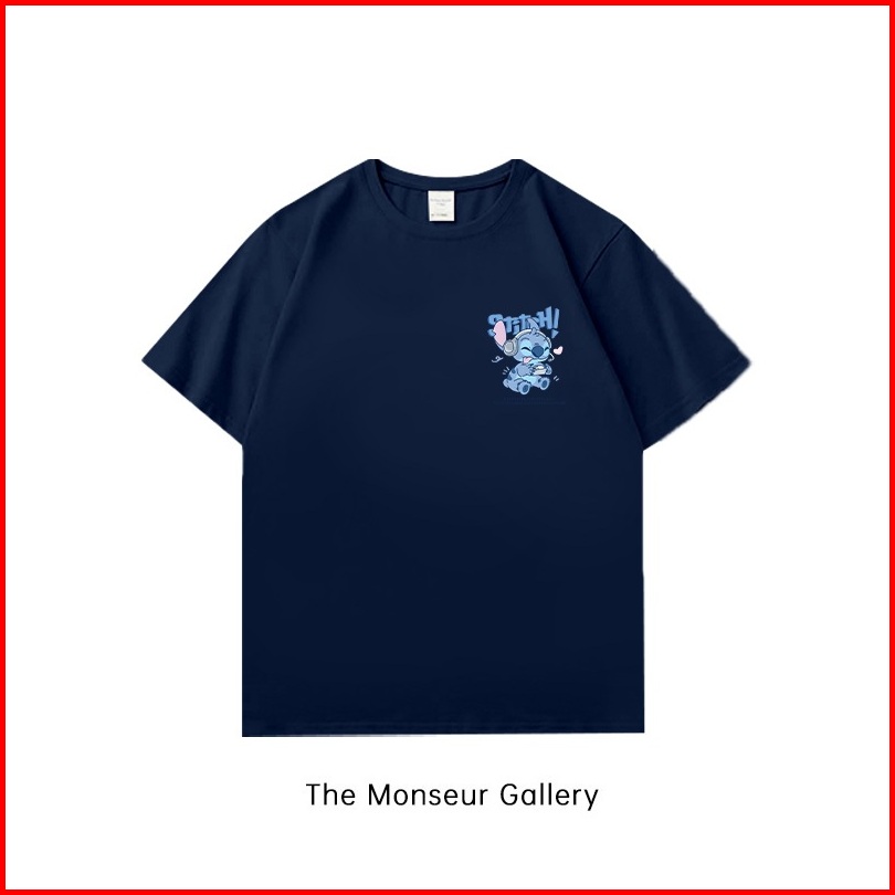 The Monseur Gallery Kaos Wanita Oversize Cartoon Small Logo Blue Stitch Style Baju Atasan Wanita Terbaru Kaos Baju Biru