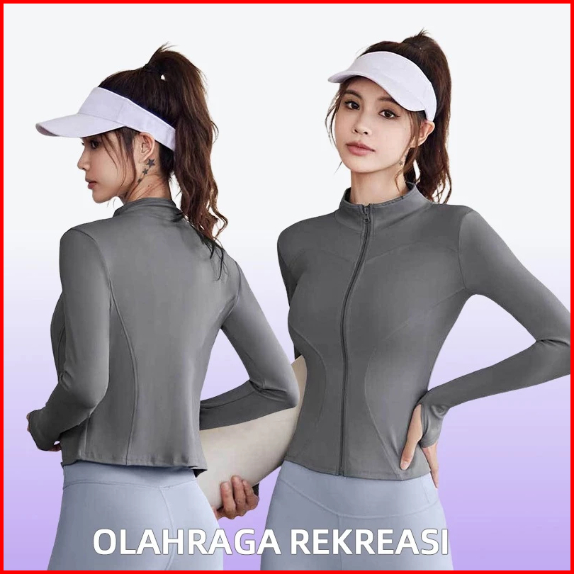 Jaket Olahraga Anti Uv Wanita Polos Lengan Panjang Untuk Yoga Gym Fitness Sport Zumba