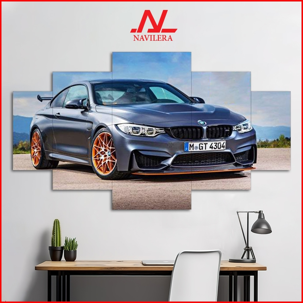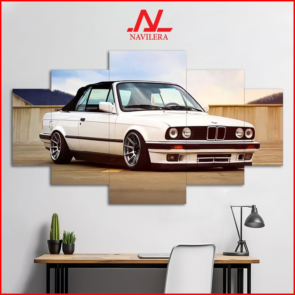 Navilera.co Hiasan Pajangan Dinding Retro Klasik 1 Set Edisi Mobil Bmw 5 Pcs Poster Kayu Wall Decor