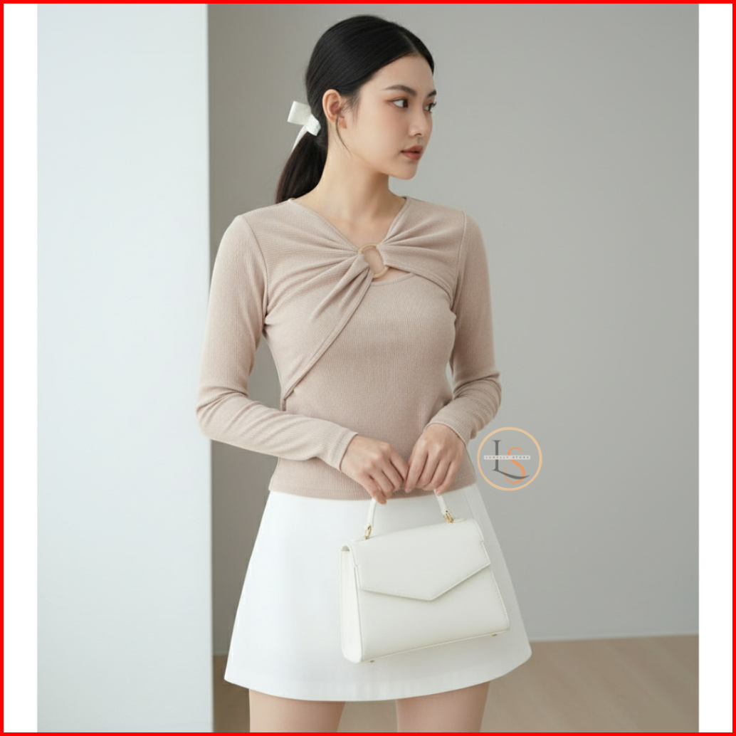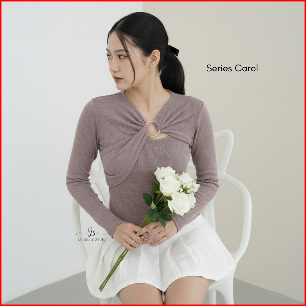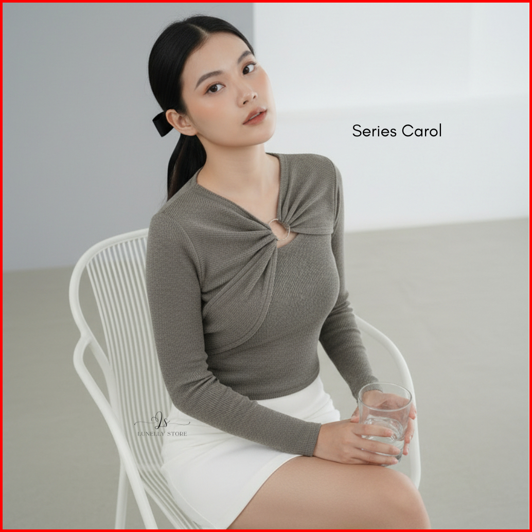 Lunelly Crop Top Carol Long Slevee Lengan Panjang Two Piece Baju Polos Wanita Fashion Korean Style Atasan Wanita Knit Co