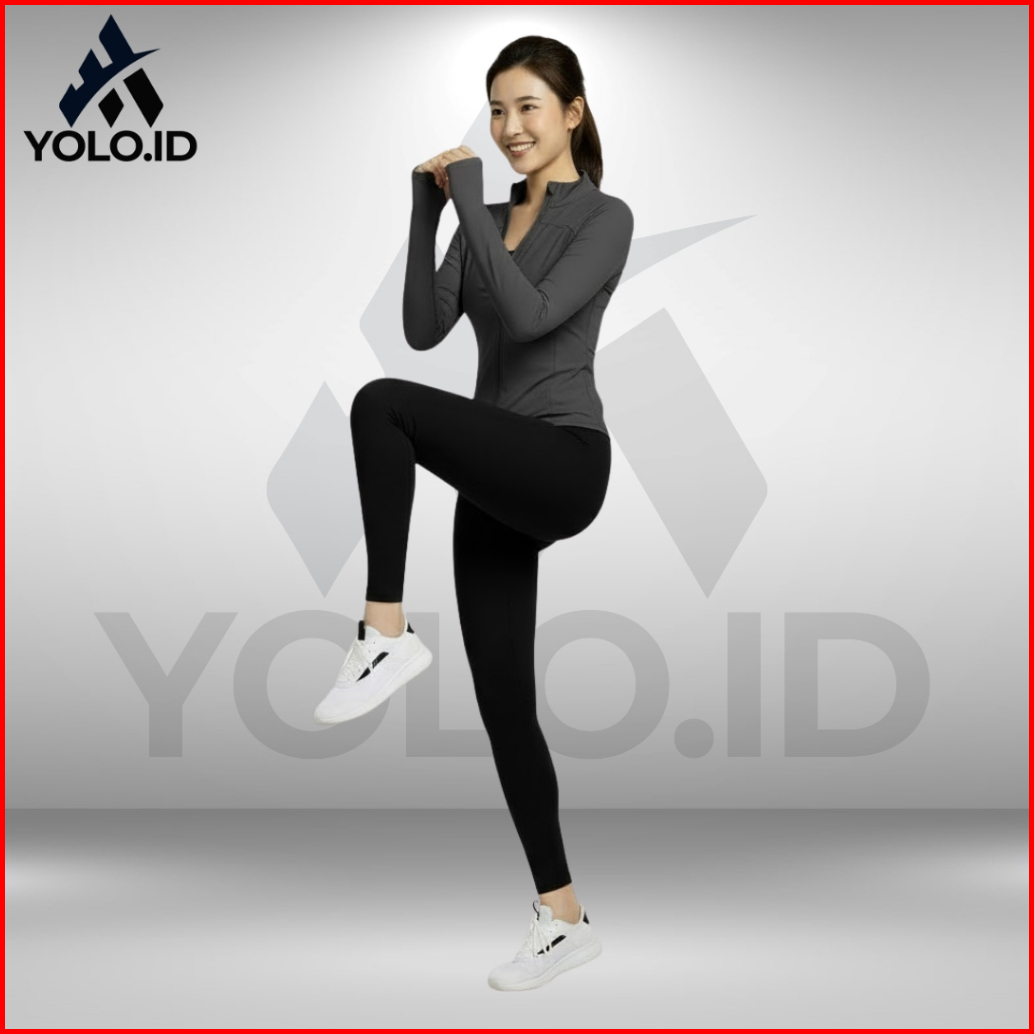 Jaket Lengan Panjang Olahraga Wanita Spandex Anti Uv Yoga Gym Run