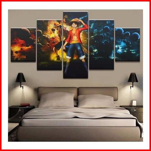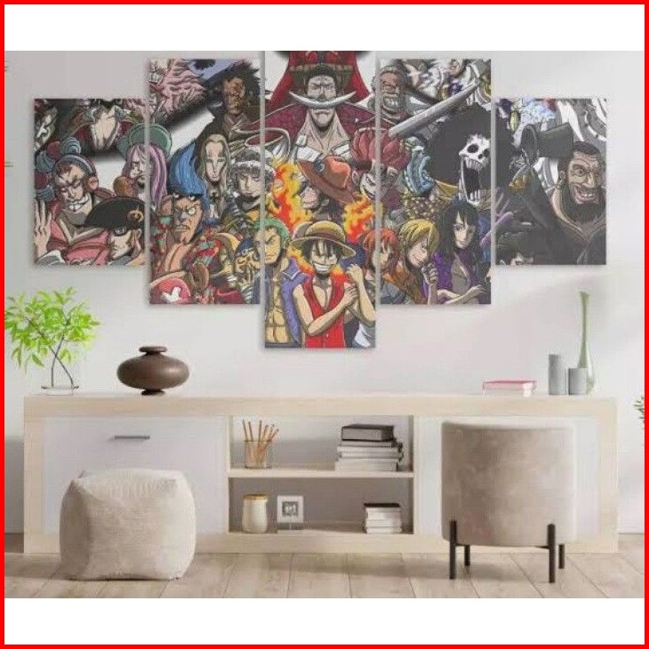 Bomal....welldecor Hiasan Dinding Dekorasi Rumah 1set 5pcs Motif Anime One Piece Terbaru Hiasan Ruang Kamar Poster Kayu