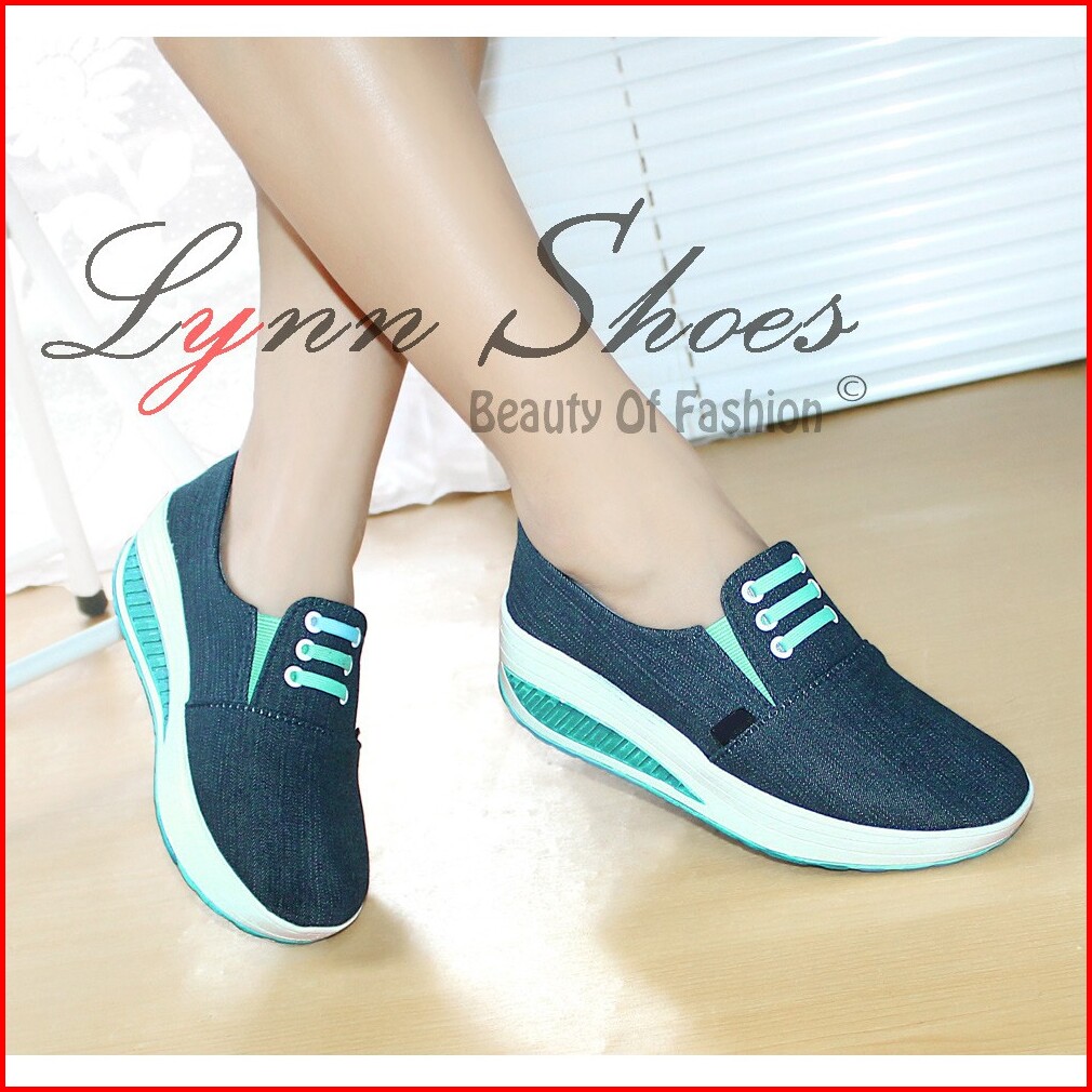 Lynn Sepatu Olahraga Sneakers Running Wanita Sk6wj - Biru Coklat