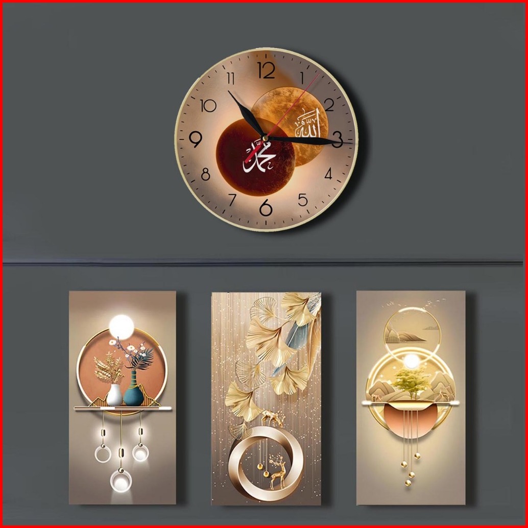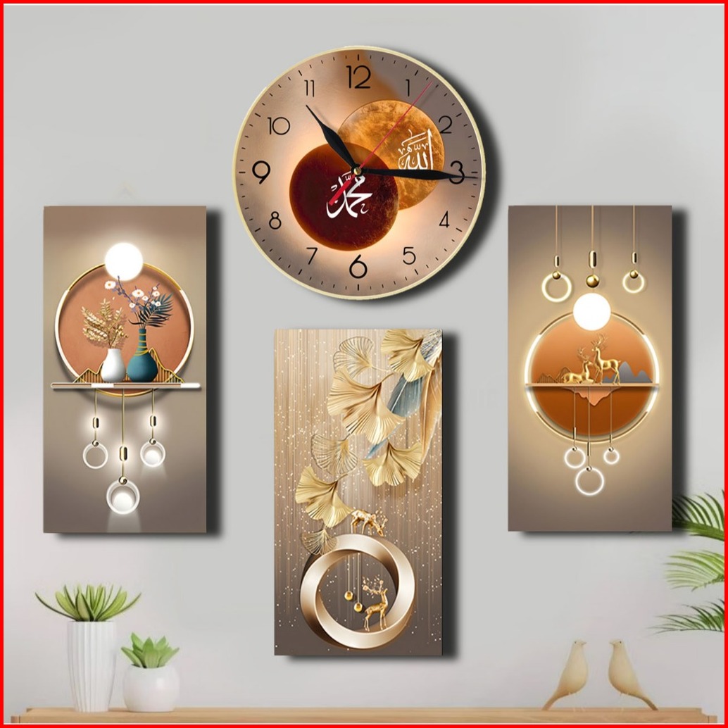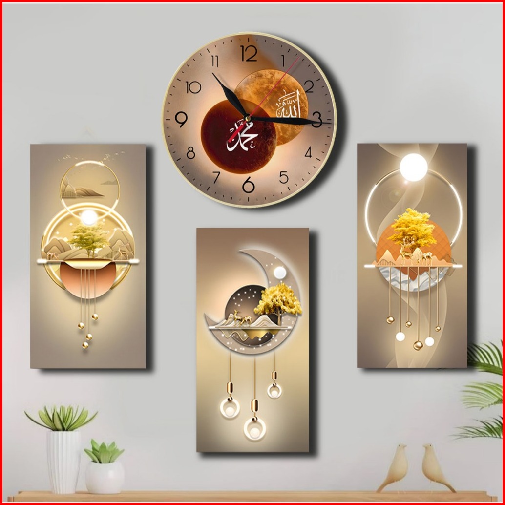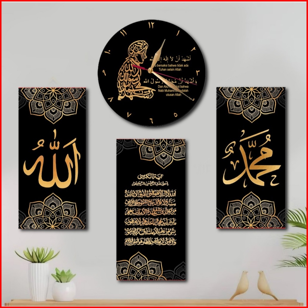 Jam Dinding 3d Kaligrafi - Hiasan Dinding Islami - Tema Realistik Poster Set 4pc
