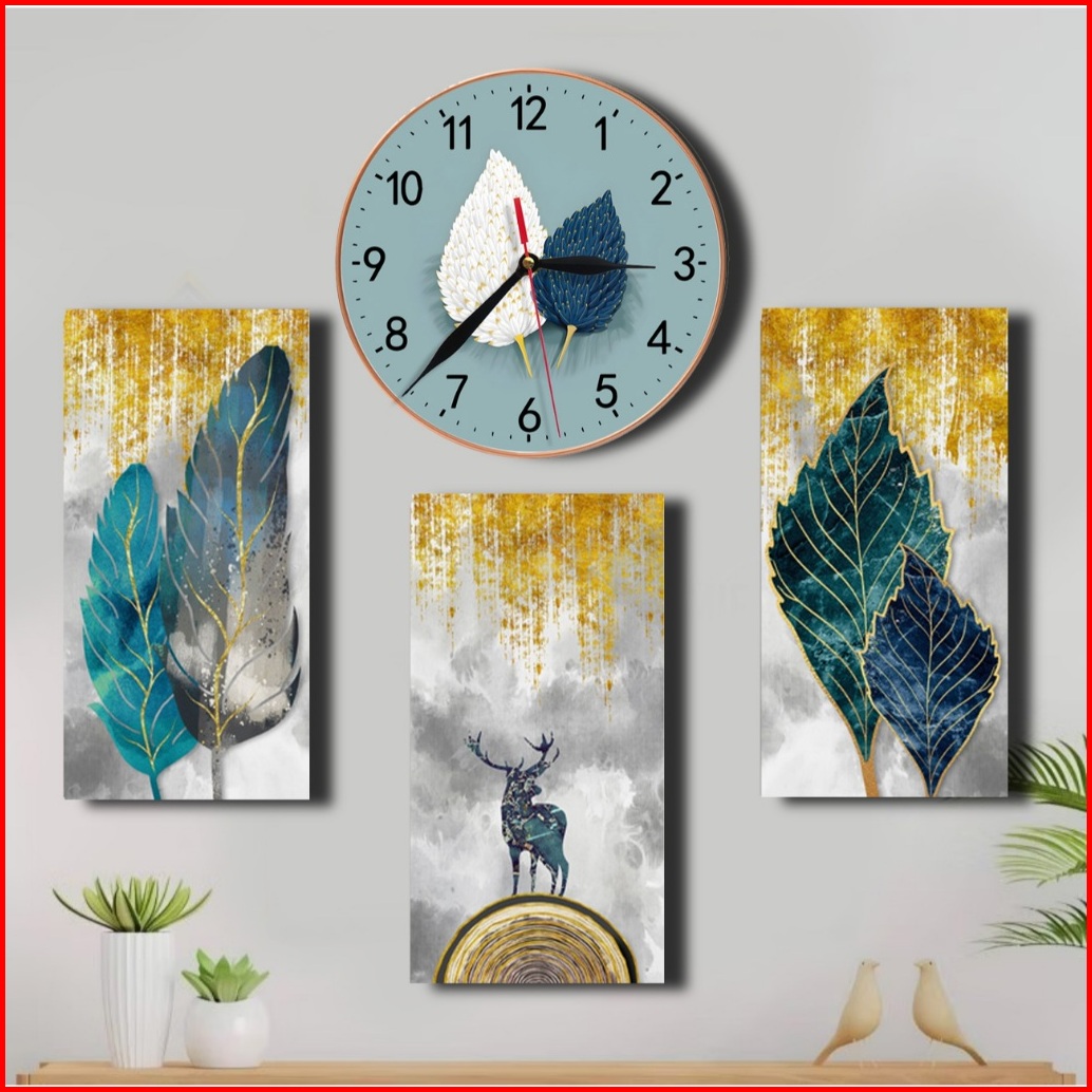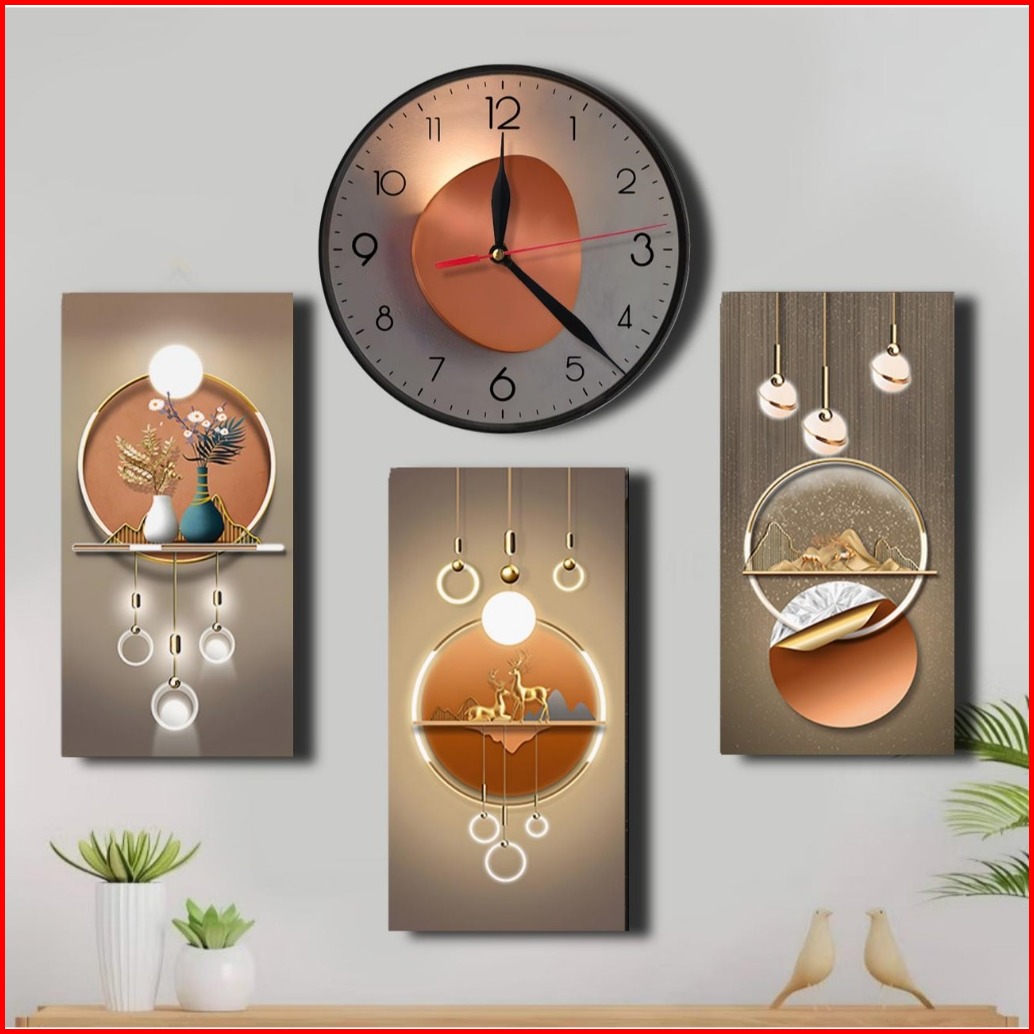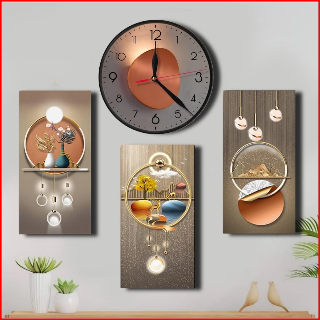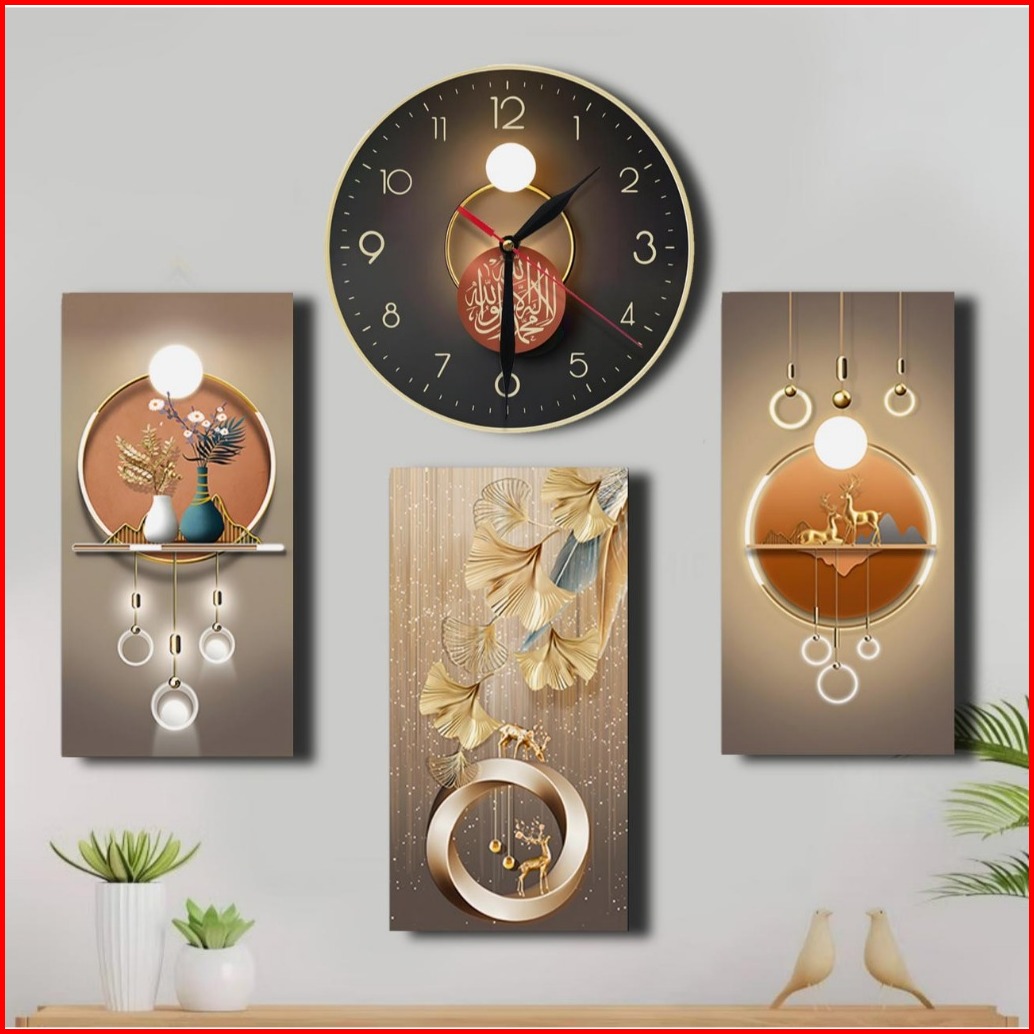 Jam Dinding 3d Kaligrafi - Hiasan Dinding Islami - Tema Realistik Poster Set 4pc