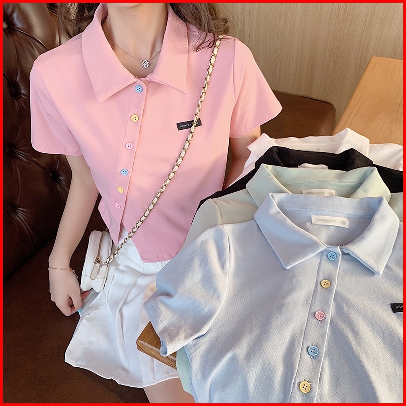 T-shirt Wanita Pendek Kaos Slim Fit Kameja Kasual Baju Desain Baru Pinggang Tinggi Kasual T-shirt