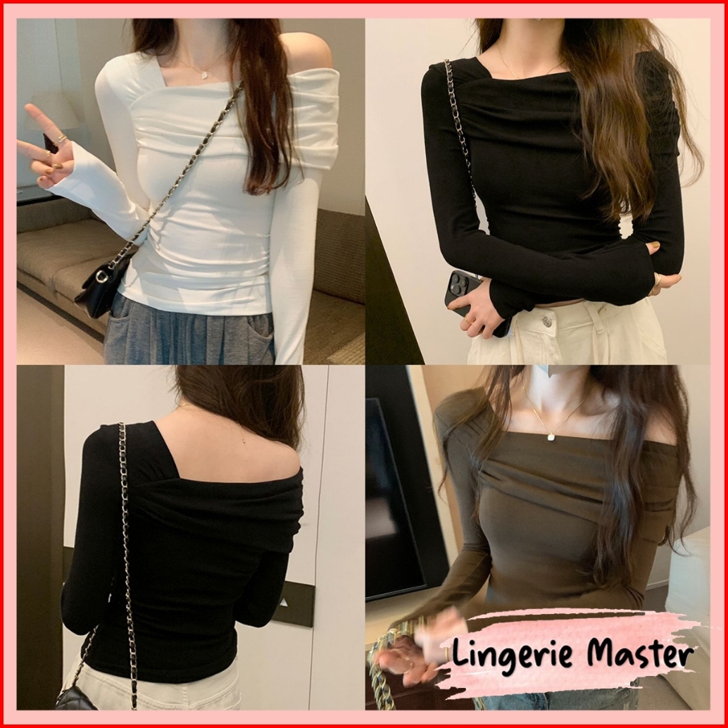 Lingerie Master - T-127 Long Sleeves Off-shoulder T-shirt Wanita Versi Korea Slim Pakaian Wanita