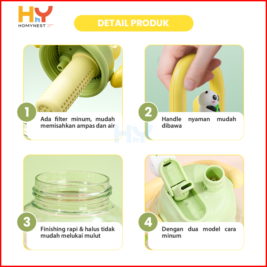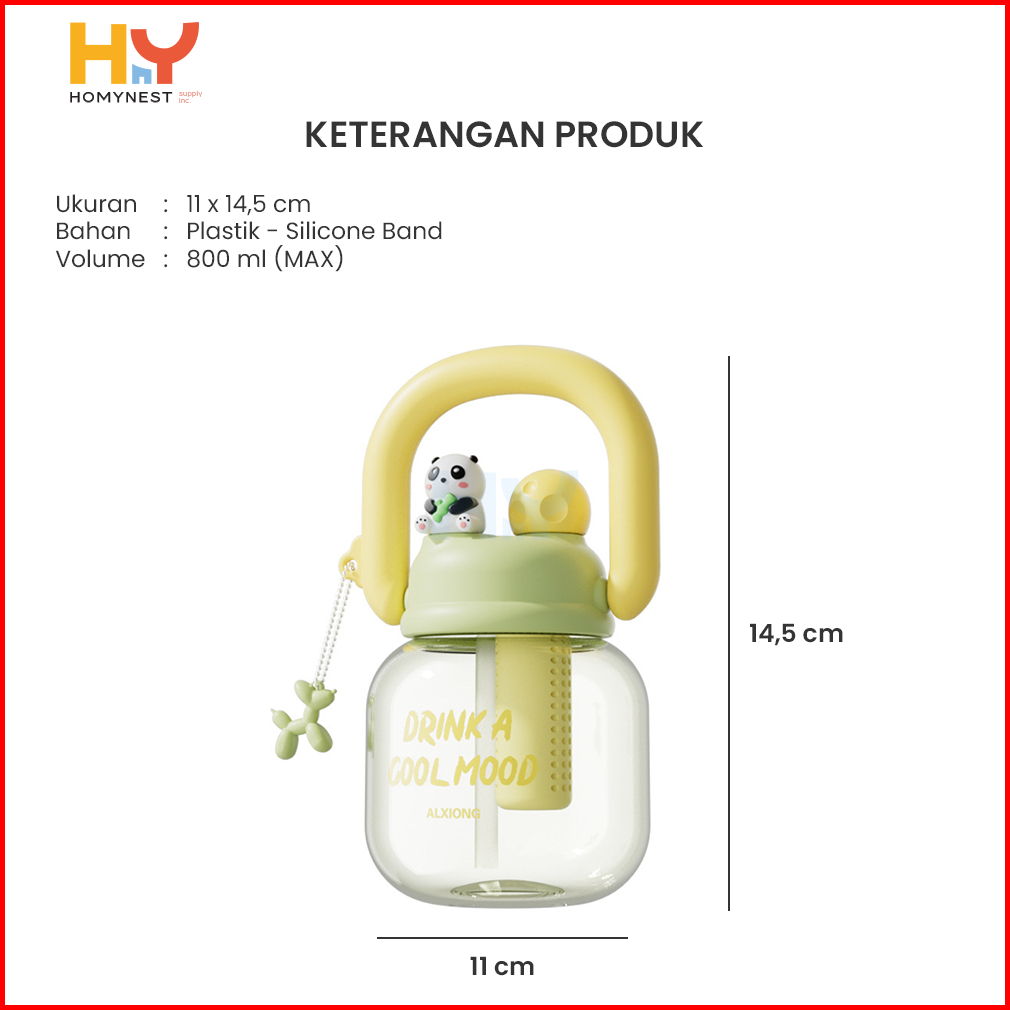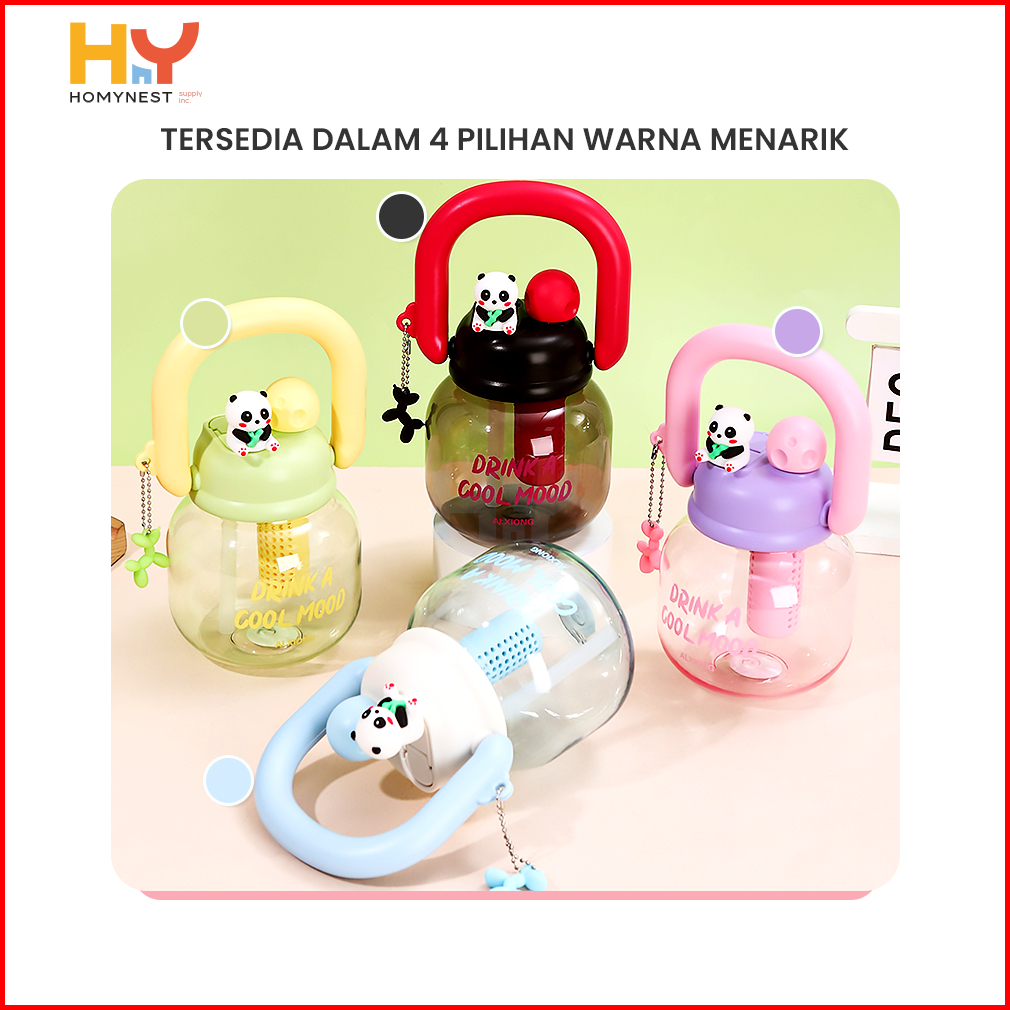 Homynest Botol Air Anak Karakter Lucu Panda Transparan Bening 2 Cara Minum Bahan Plastik Tritan Aesthetic 800ml Bpa Free