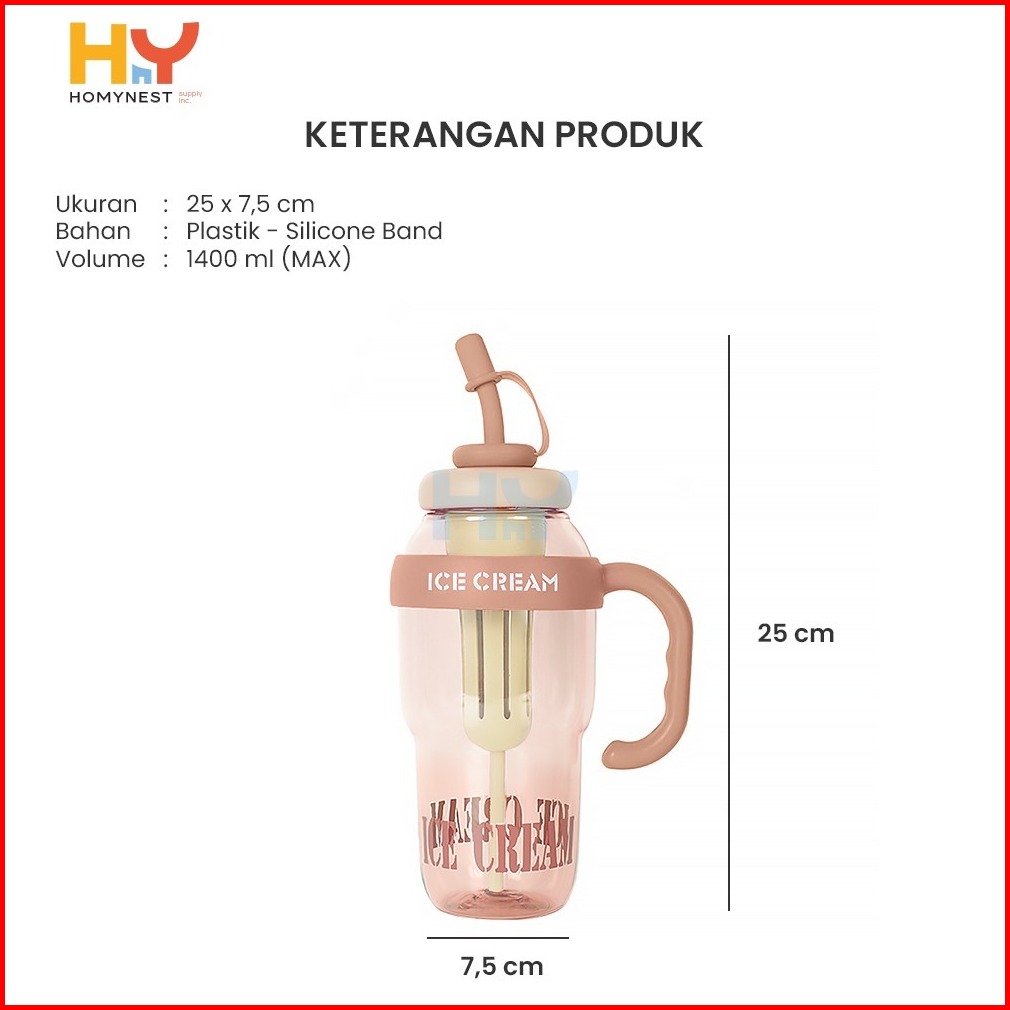 Homynest Botol Minum Anak Ice Cream 1400ml Dengan Sedotan Tumbler Aesthetic Kekinian