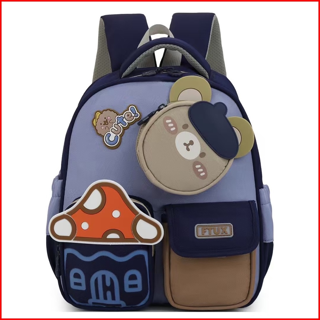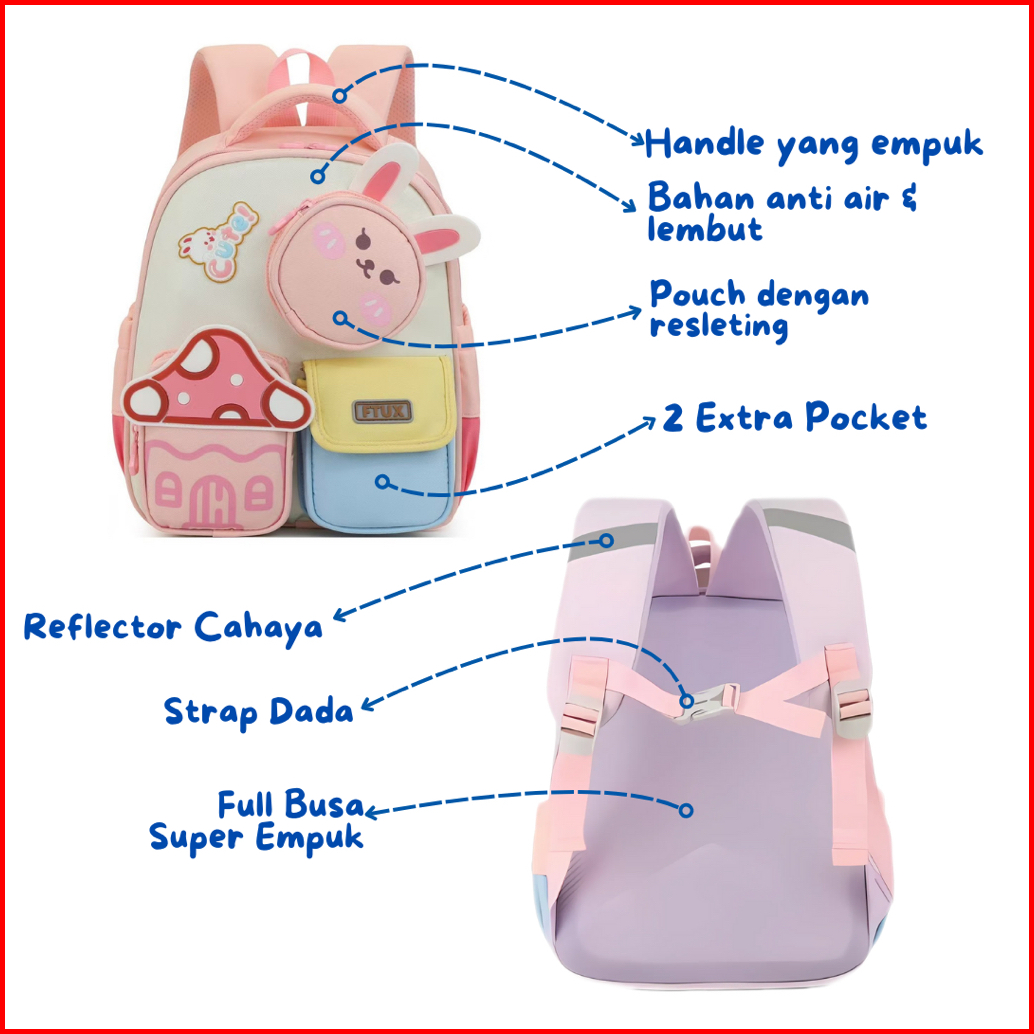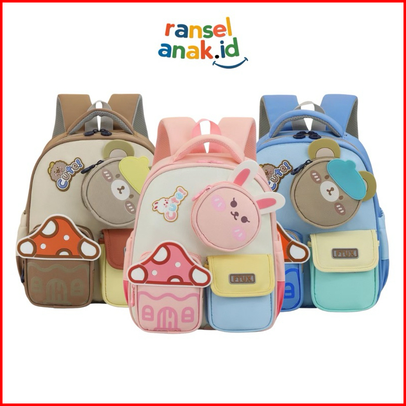 Ra.id Mushbuddies - Tas Ransel Import Anak Anti Air Kelinci Beruang Sd Tk Backpack Pengait Dada