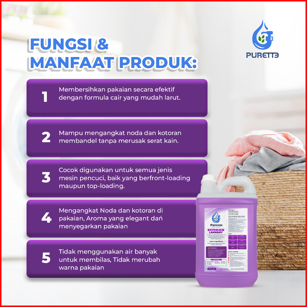 Deterjen Cair Laundry Premium Detergent Purette Liquid Detergent 5l