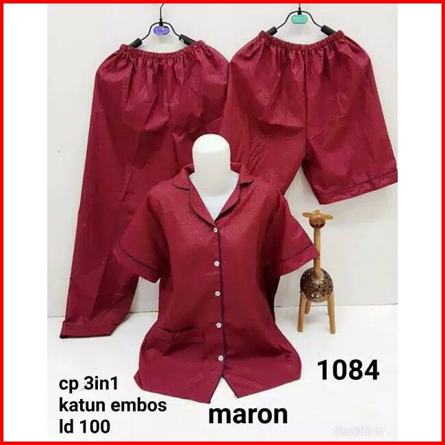 Pluto Piyama Satin Embos 3in1 Baju Tidur Wanita Dewasa