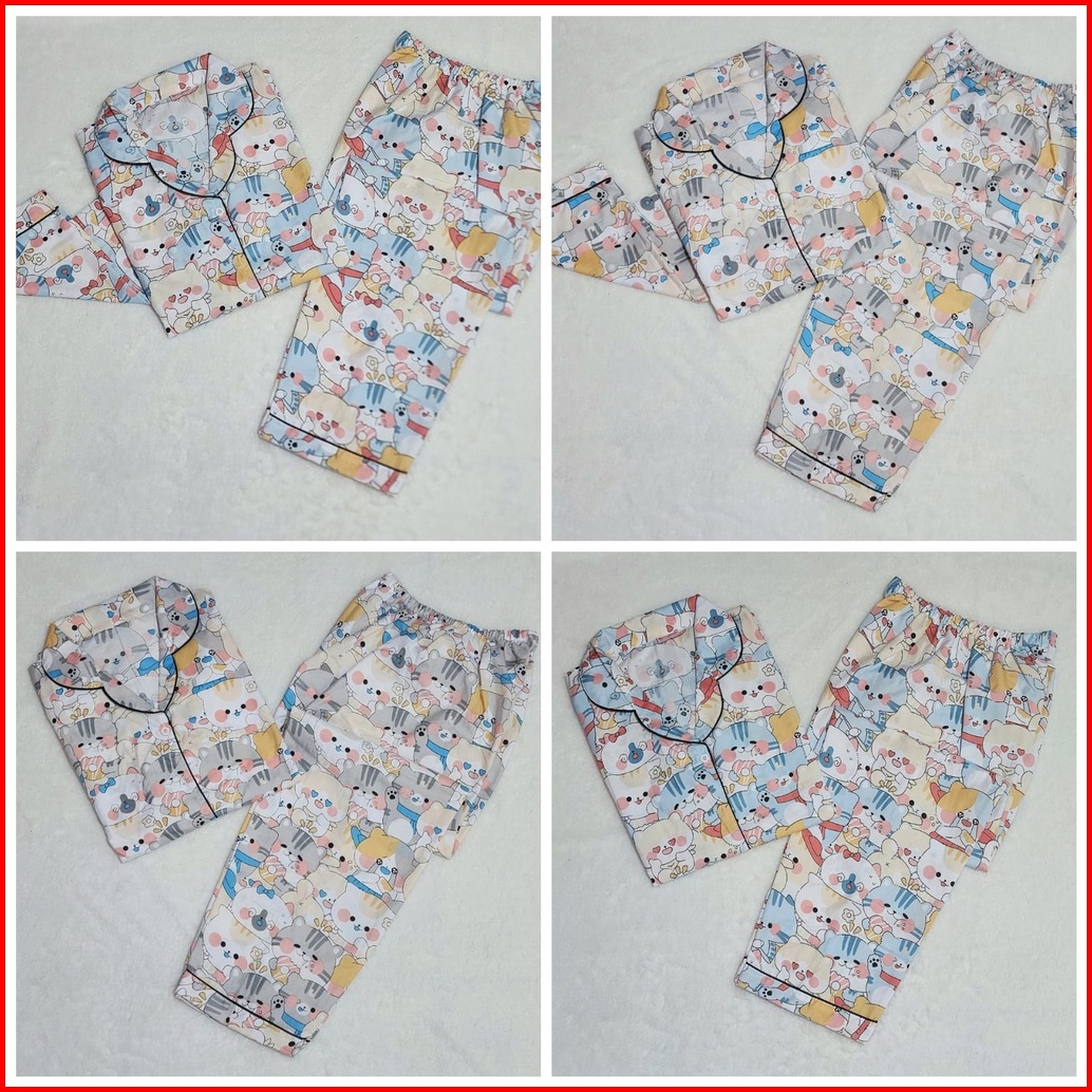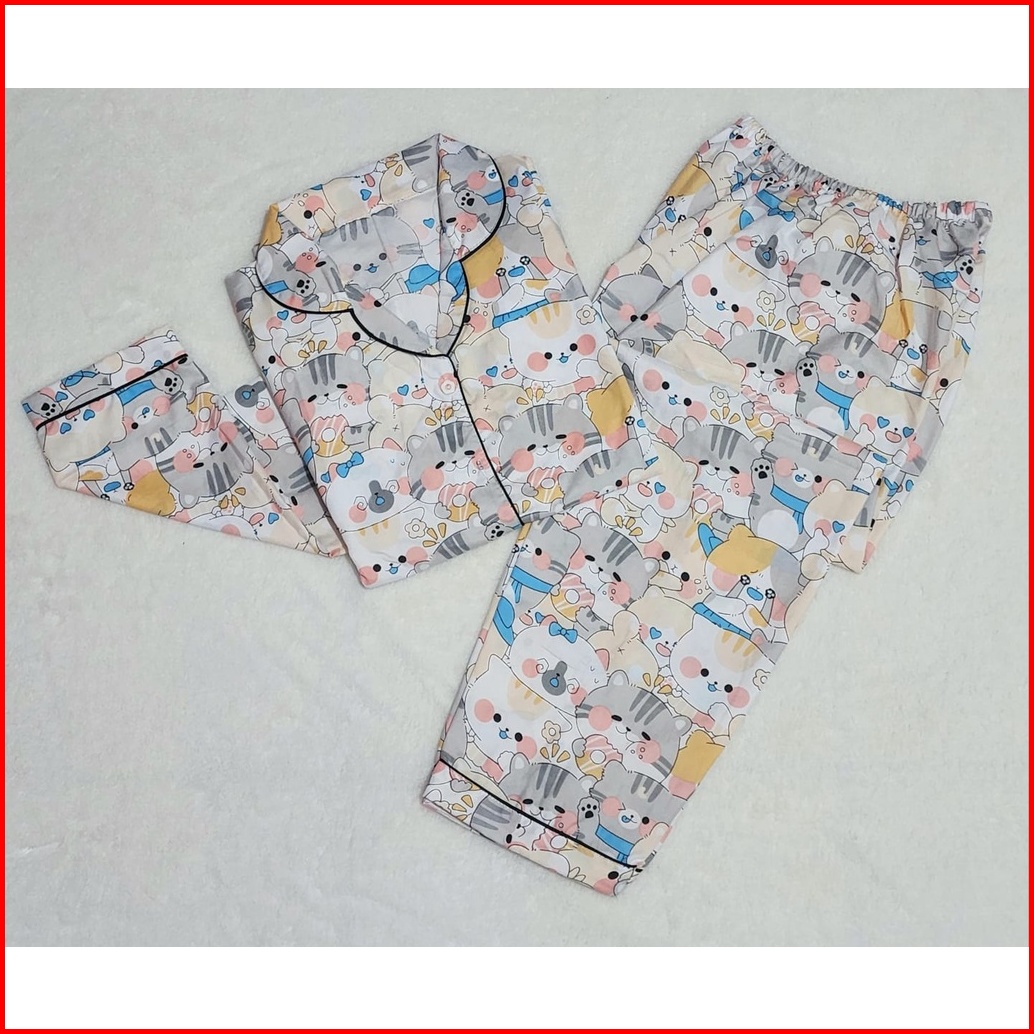 Piyama Baju Tidur Dewasa Motif Kucing Part 1 Setelan Pajamas Cewek Wanita Lengan Pendek Lengan Panjang Celana Panjang