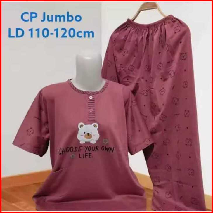 Termurah Cp Baju Tidur Jumbo Ld 110-120 Wanita Dewasa Bahan Kaos Celana Panjang Lengan Pendek