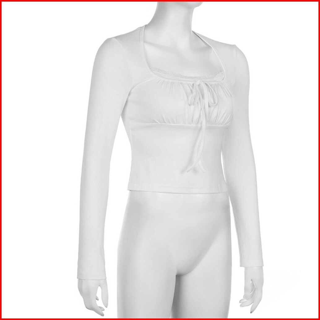 Heysoul Baju Coquette Style Wanita - Atasan Crop Top Lengan Pendek Square Neck Pita Dada Kekinian