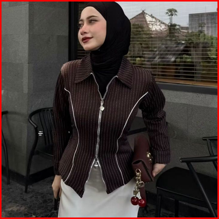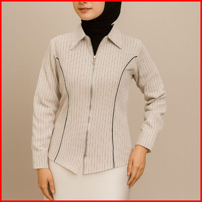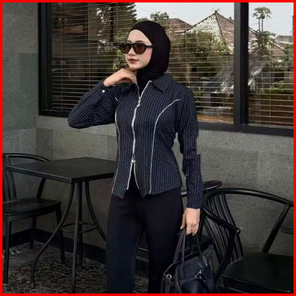 Dyffa Zipper Shirt Salur Fitted Korea Style