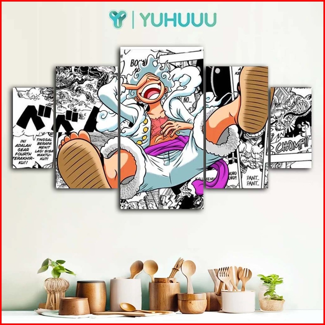 Pajangan Bingkai Foto Hiasan Dinding One Piece Luffy 5pcs Poster Kayu Wall Decor
