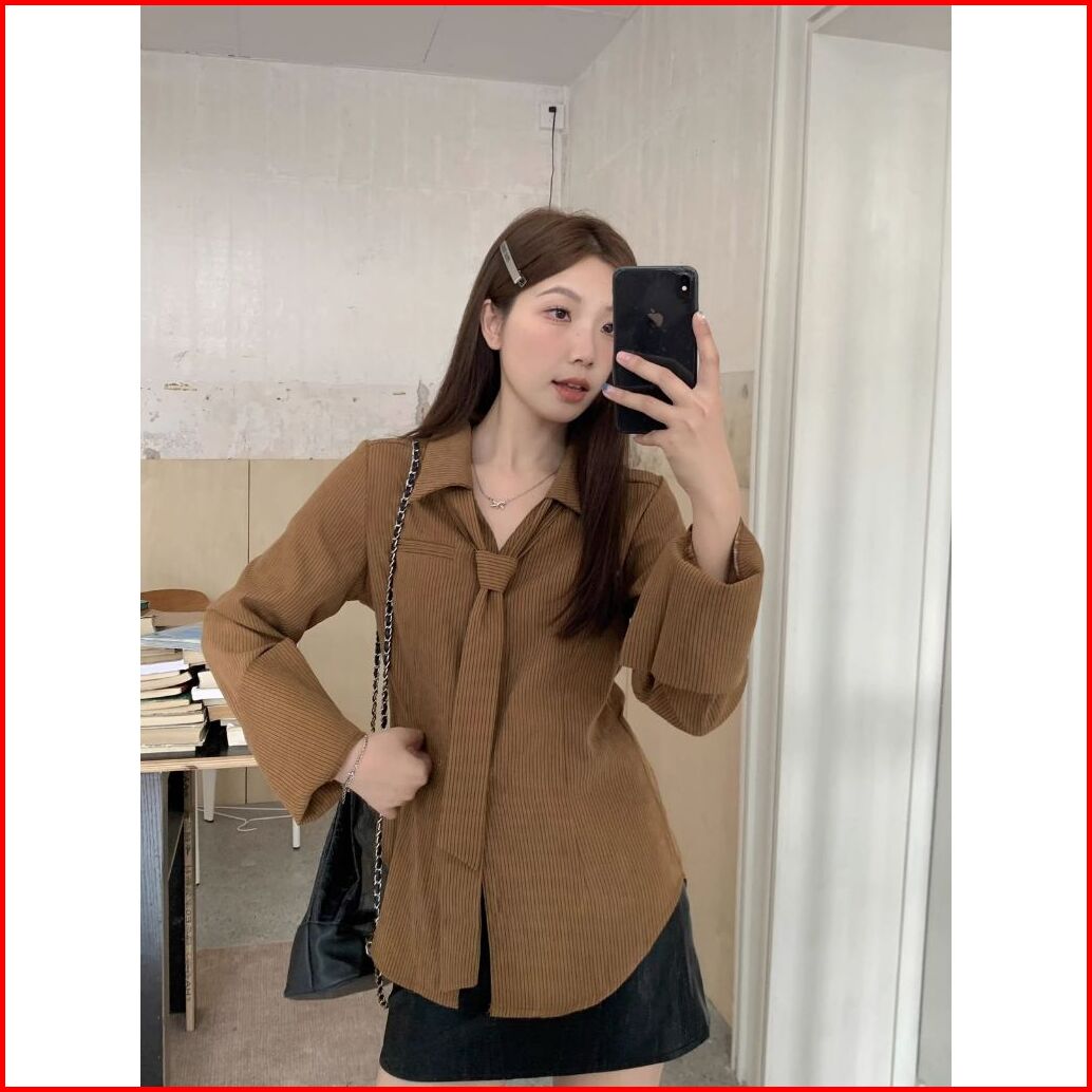 Deer Fashion - Naya Top Blouse Atasan Kemeja Slim Fit Wanita Korean Style Salur Stripe Lengan Panjang Kantoran