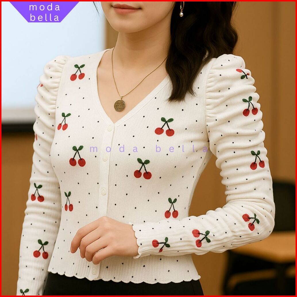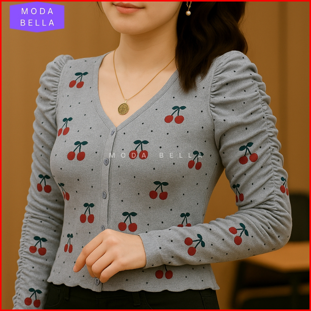 Top Atasan Wanita Knit Korean Style Cardigan Puffy Motif