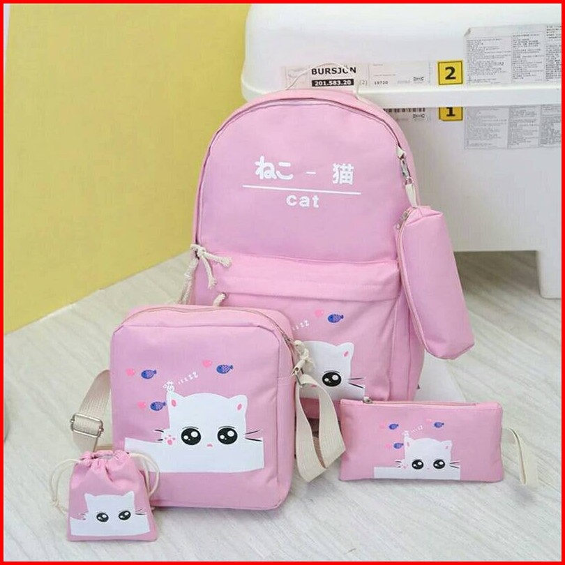 Rya.id - Sale Tas Anak Perempuan Sd Ransel Karakter Kucing 4in1 Backpack Anak Sekolah Tas Anak Perempuan Populer Kekinia
