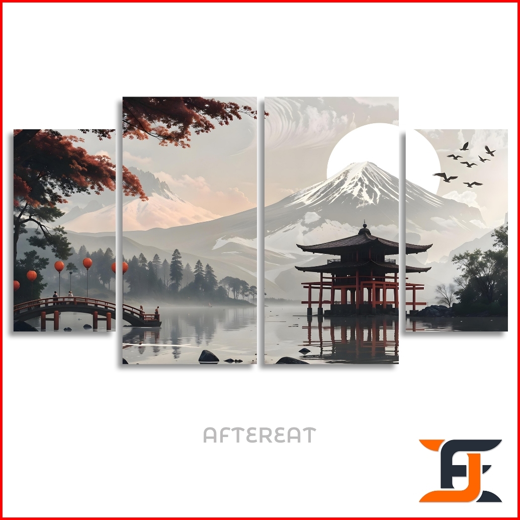 Hiasan Dinding 4 In 1 Set Chinese Traditions Poster Walldecor Abstrak Art Pajangan Kayu Aesthetic